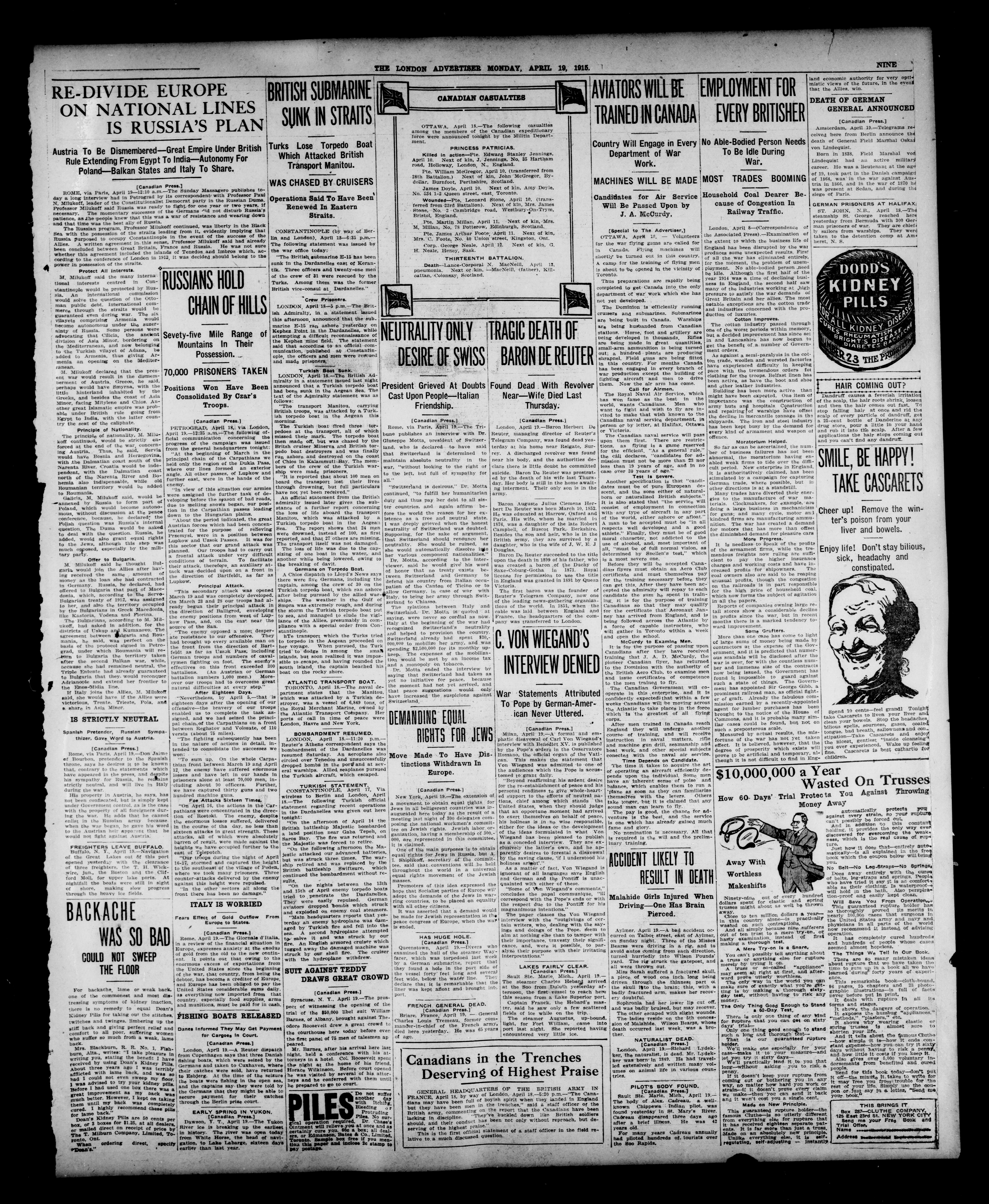 London advertiser. : The London Advertiser : 52nd Year, No. 22322 (April 19, 1915)