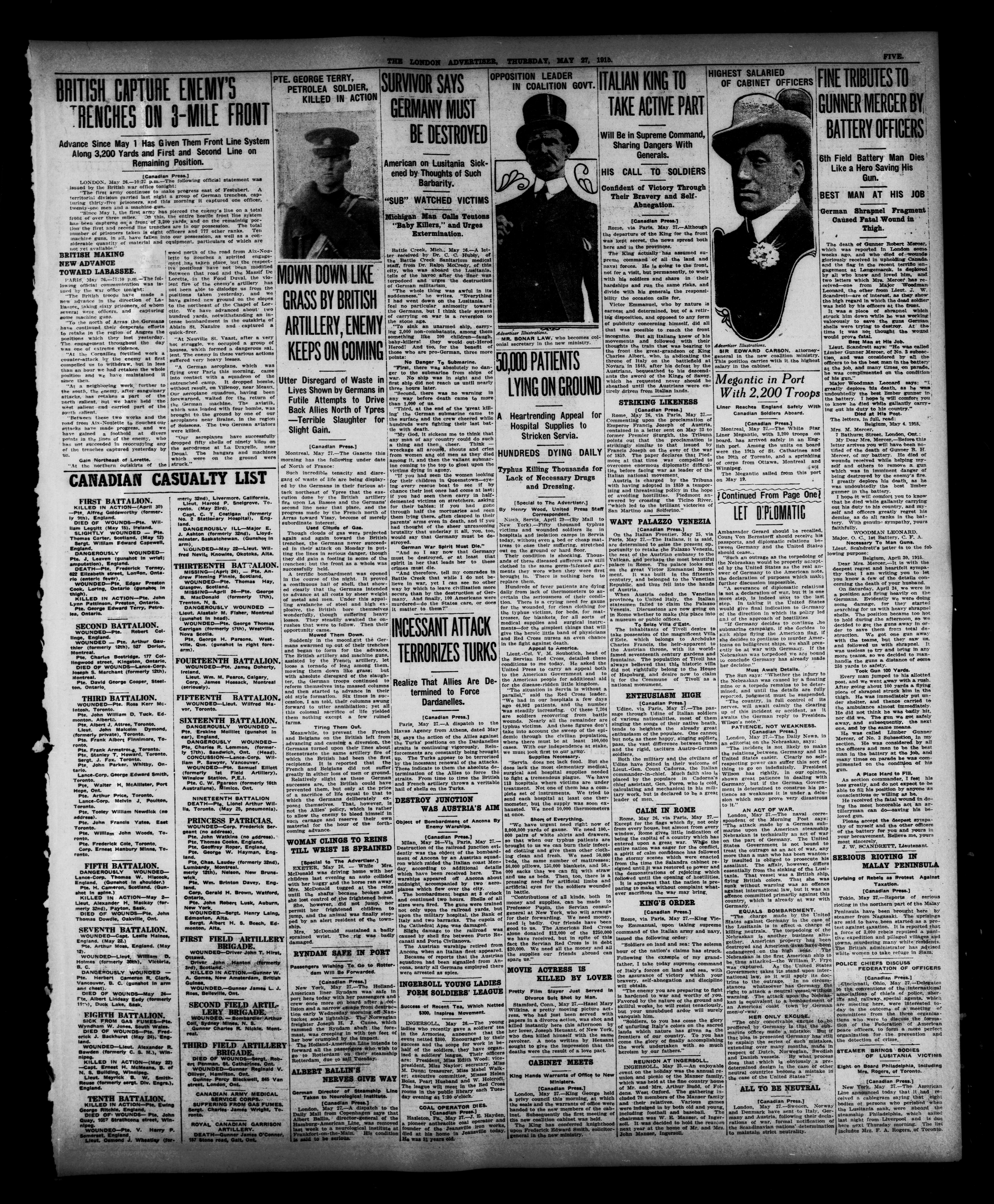 - The London Advertiser : 52nd Year, No. 22354 (May 27, 1915)