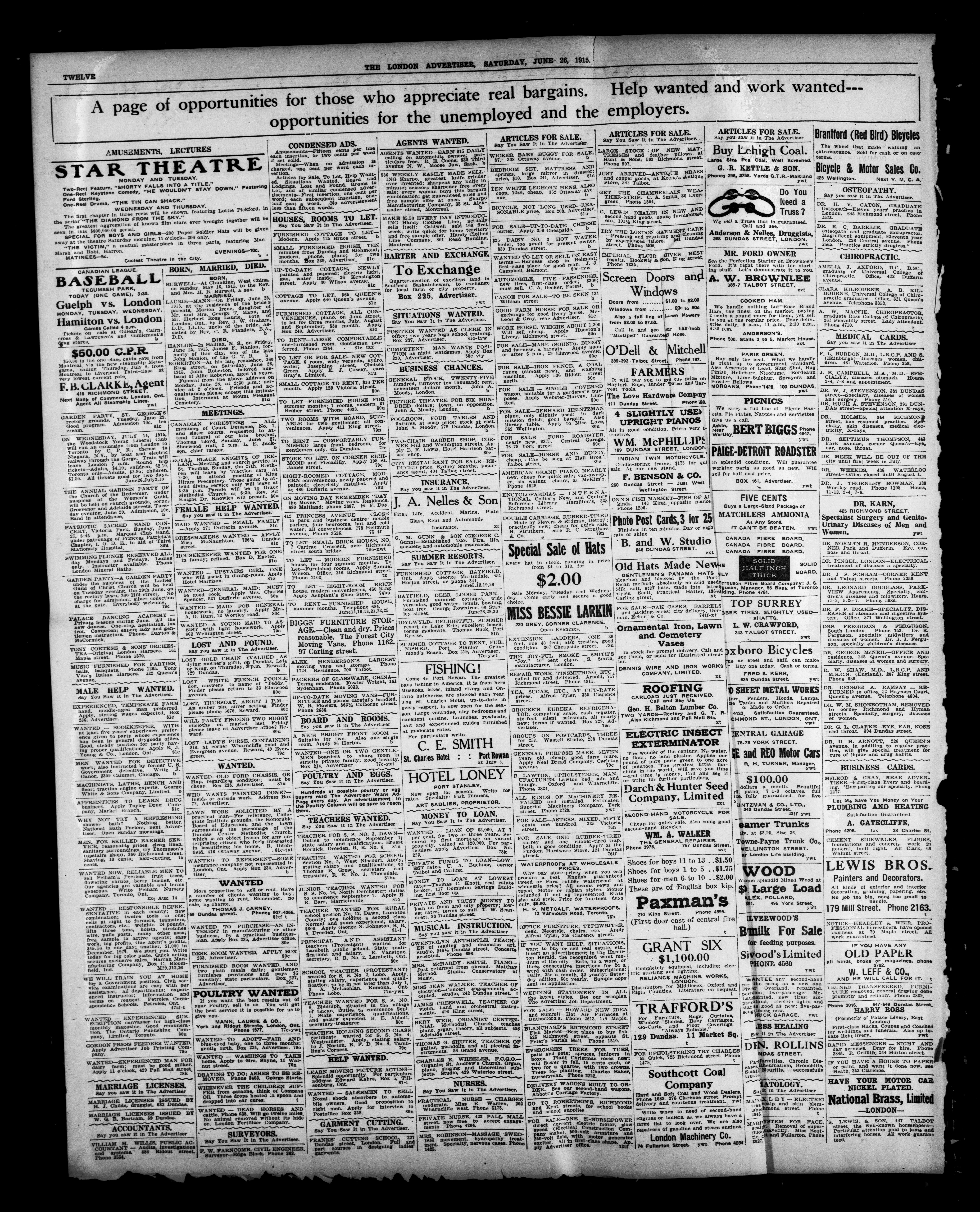- The London Advertiser : 52nd Year, No. 22381 (June 26, 1915)