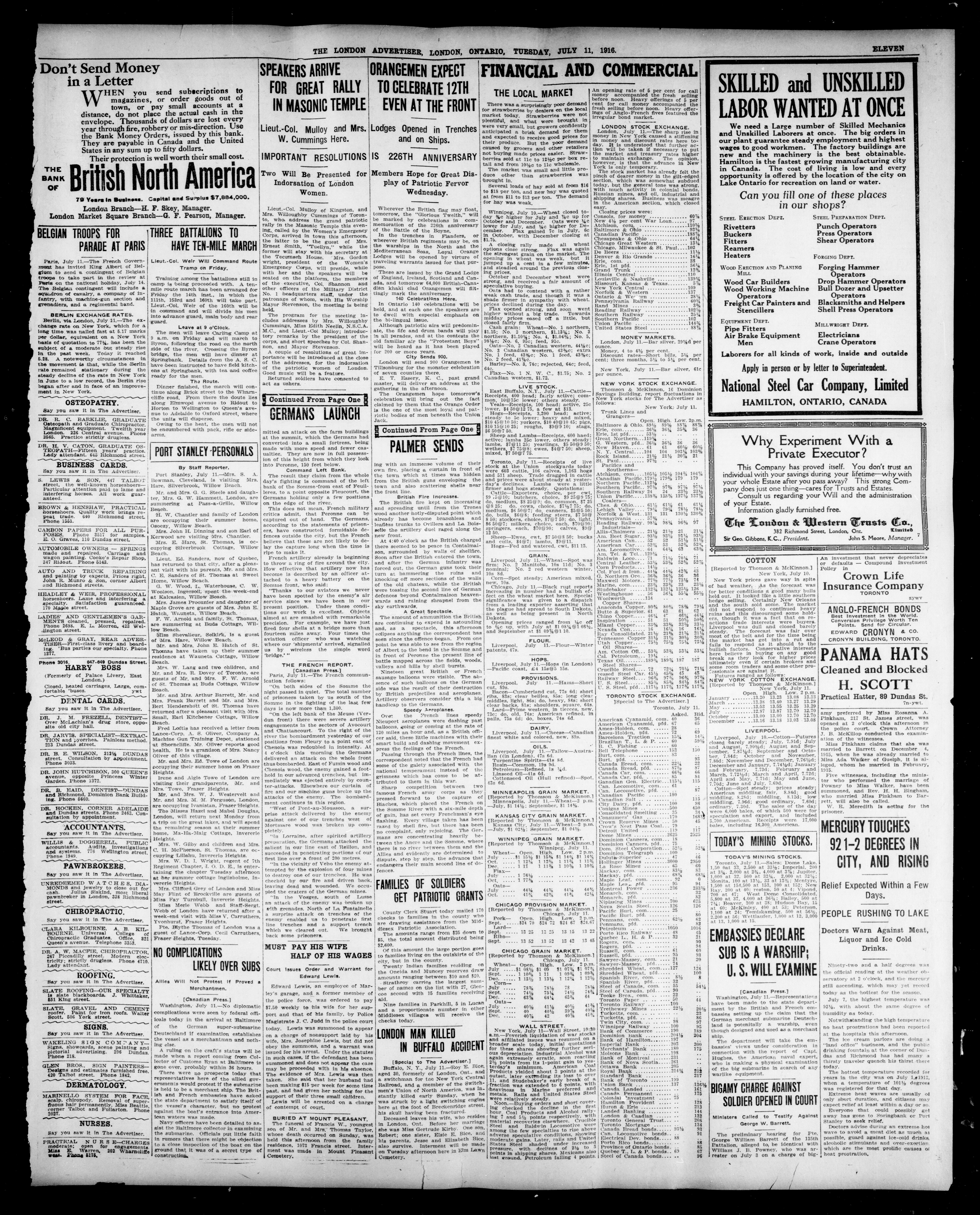 - London Advertiser : 53rd Year, No. 22507 (July 11, 1916)