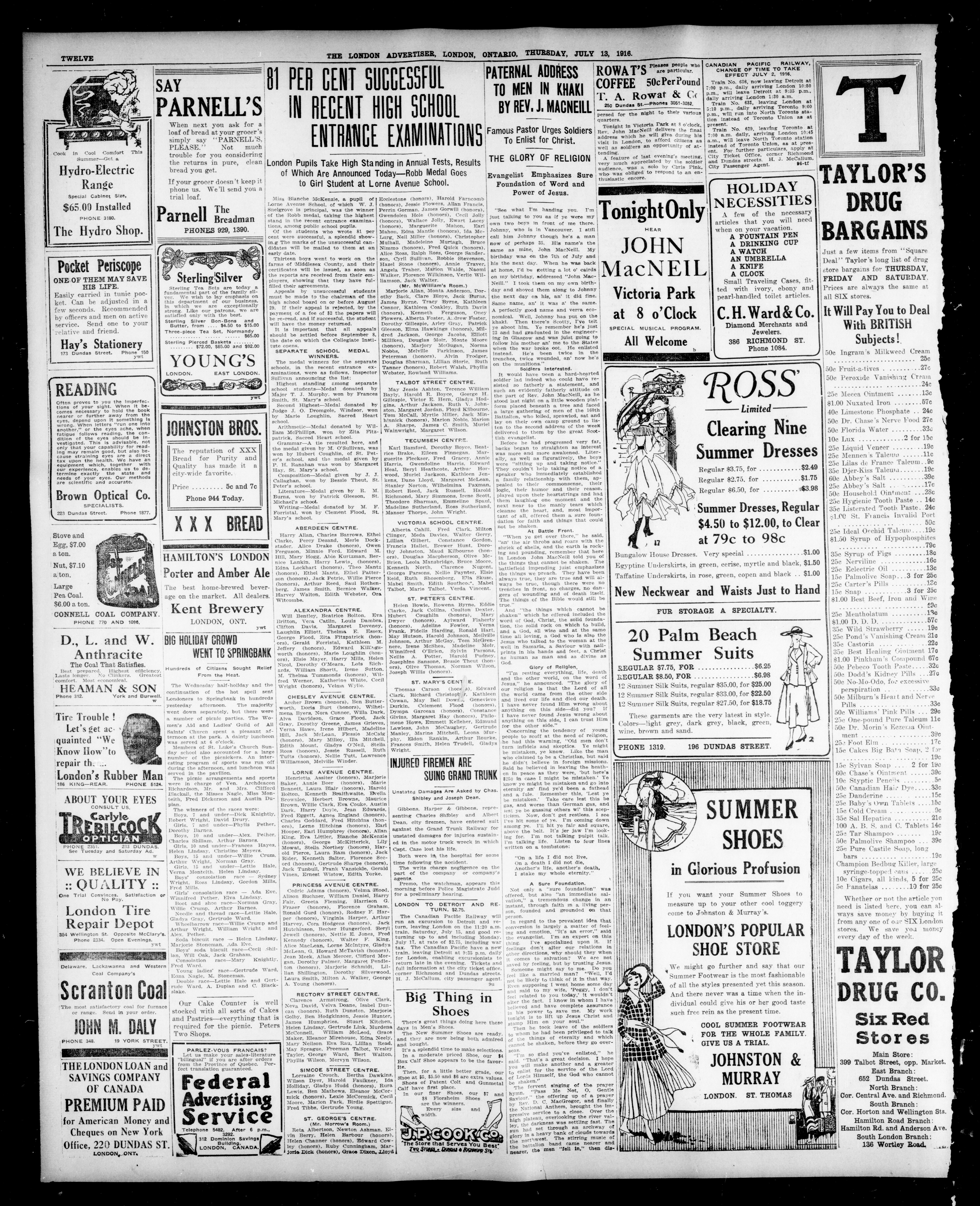 London advertiser. : London Advertiser : 53rd Year, No. 22509 (July 13, 1916)