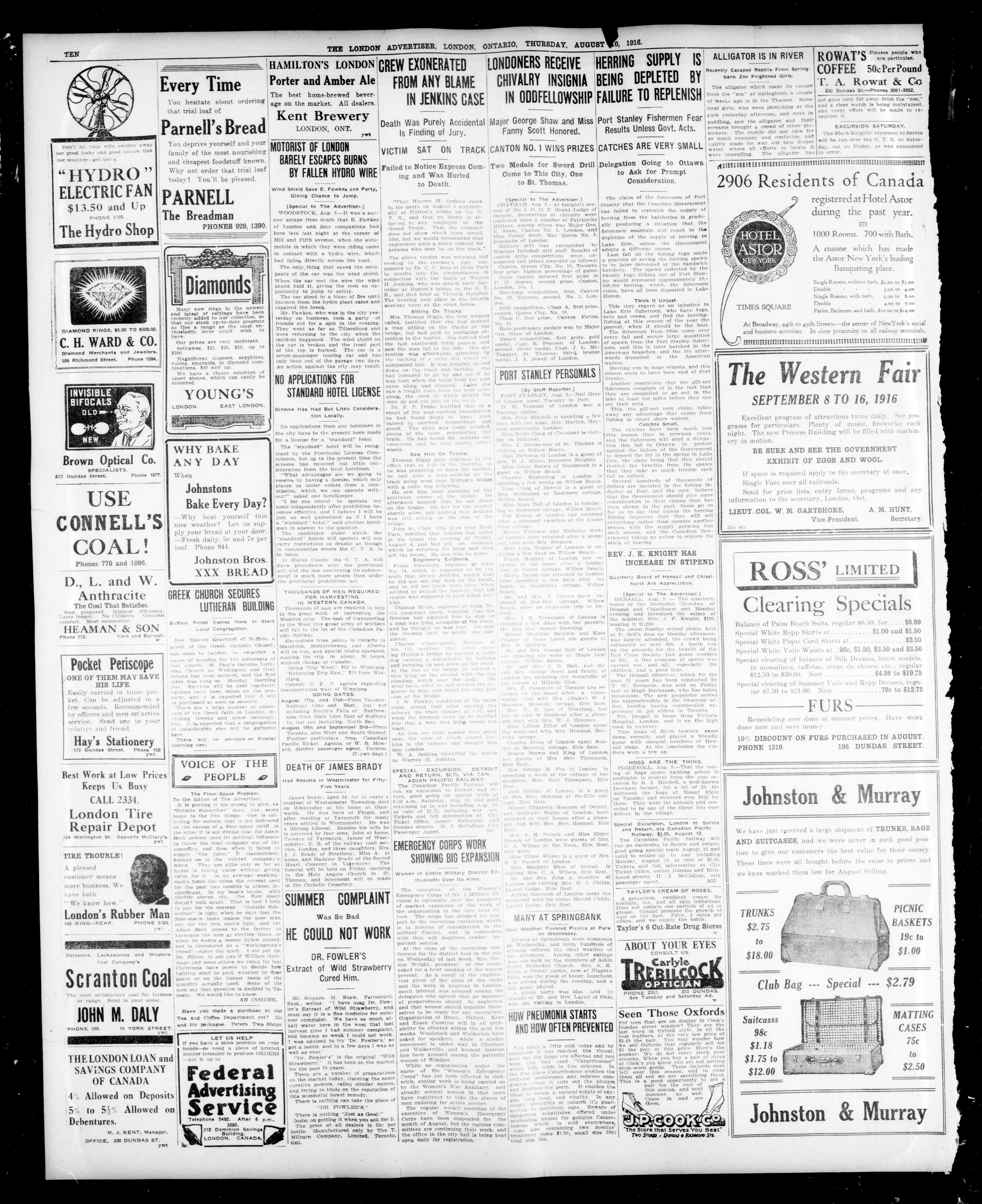 London advertiser. : London Advertiser : 53rd Year, No. 22533 (August 10, 1916)