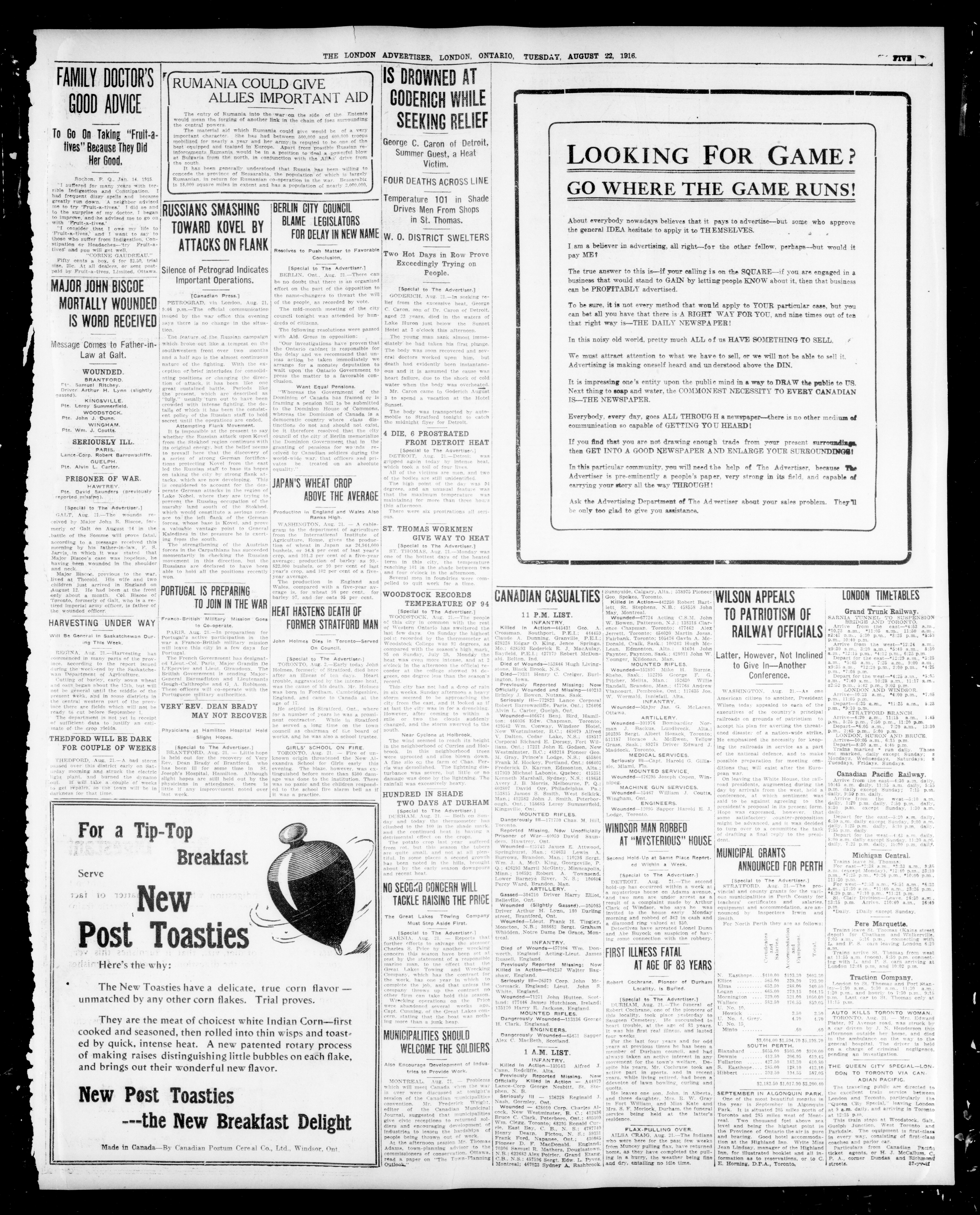 - London Advertiser : 53rd Year, No. 22543 (August 22, 1916)