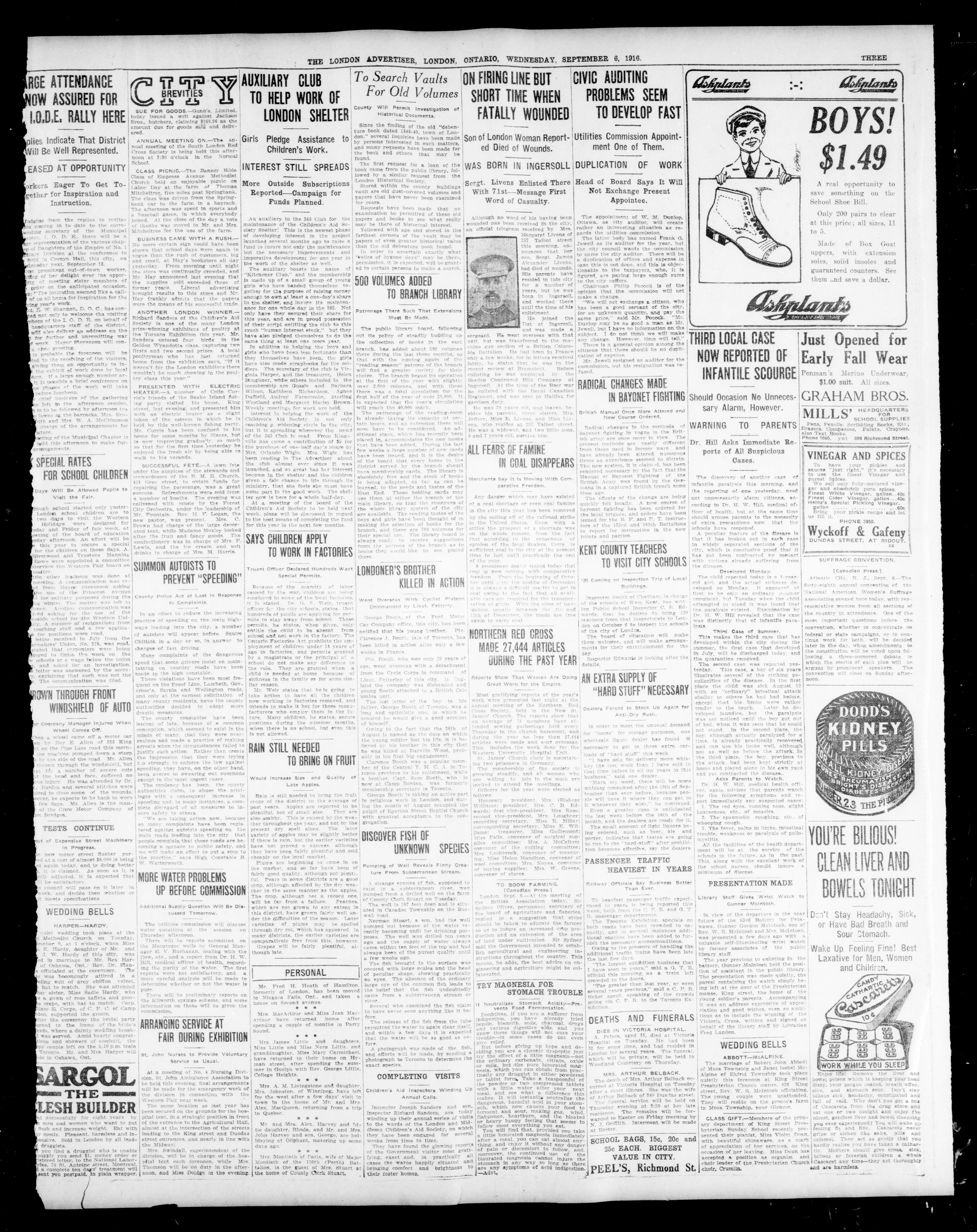 - London Advertiser : 53rd Year, No. 22556 (September 6, 1916)