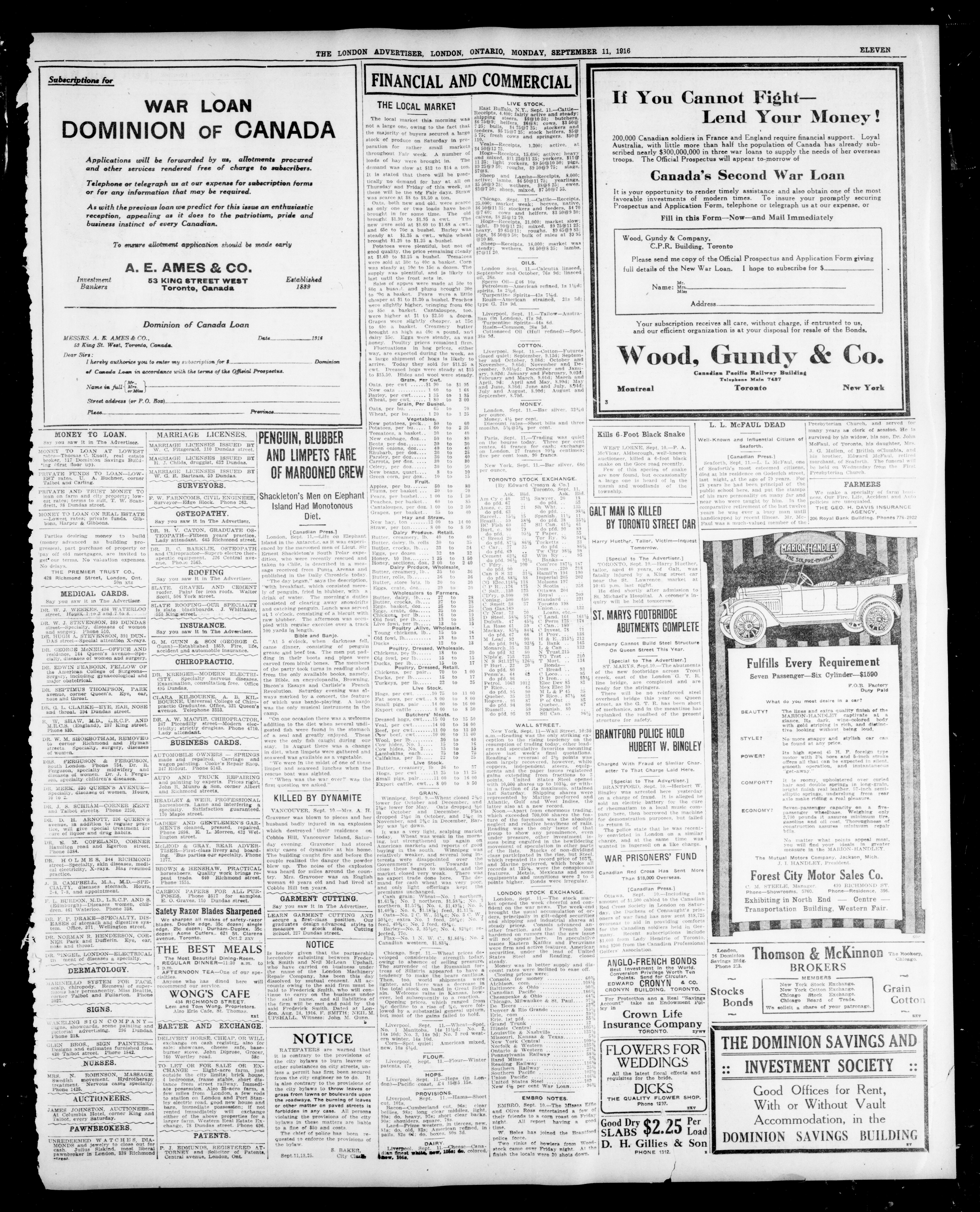 - London Advertiser : 53rd Year, No. 22560 (September 11, 1916)