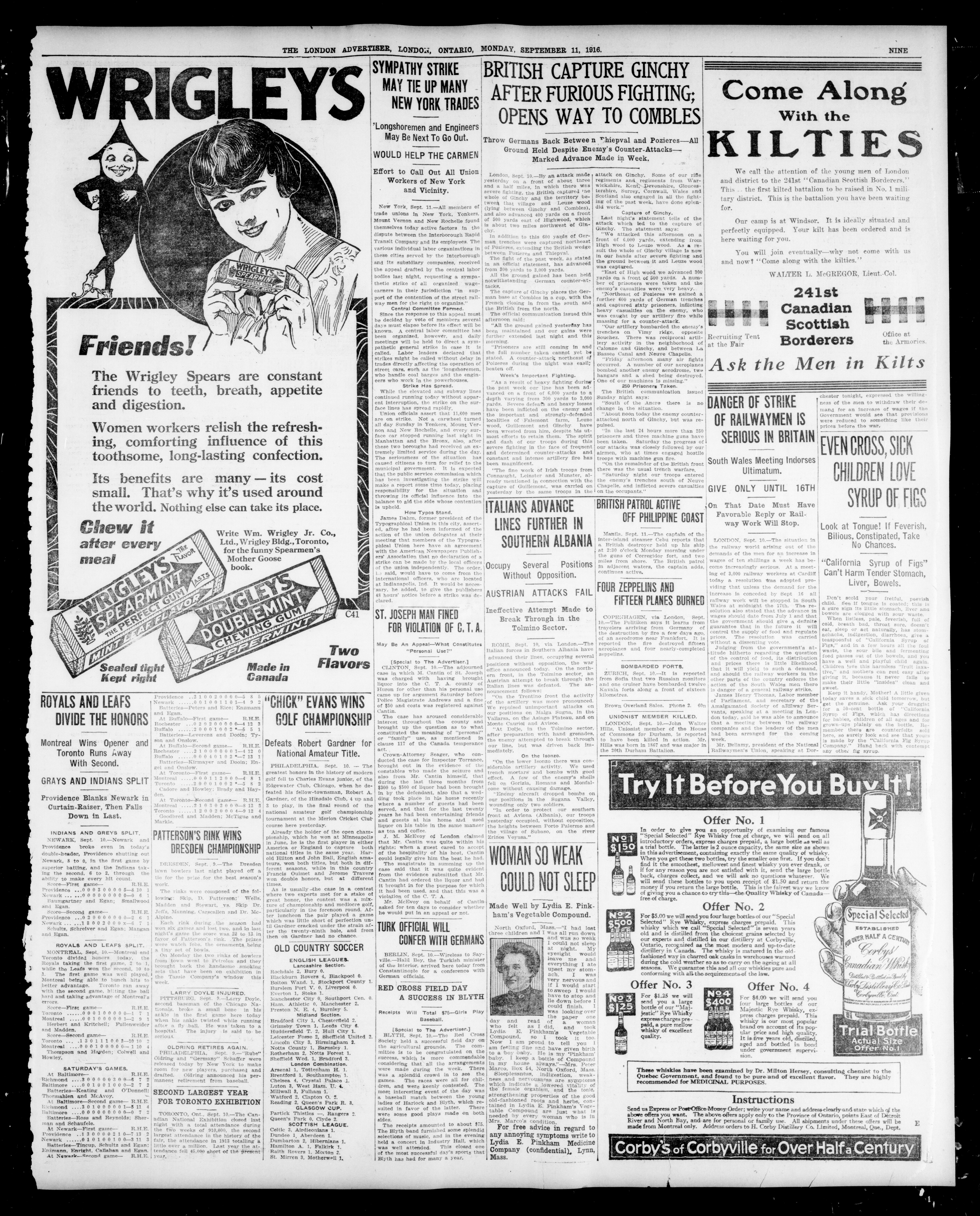 - London Advertiser : 53rd Year, No. 22560 (September 11, 1916)