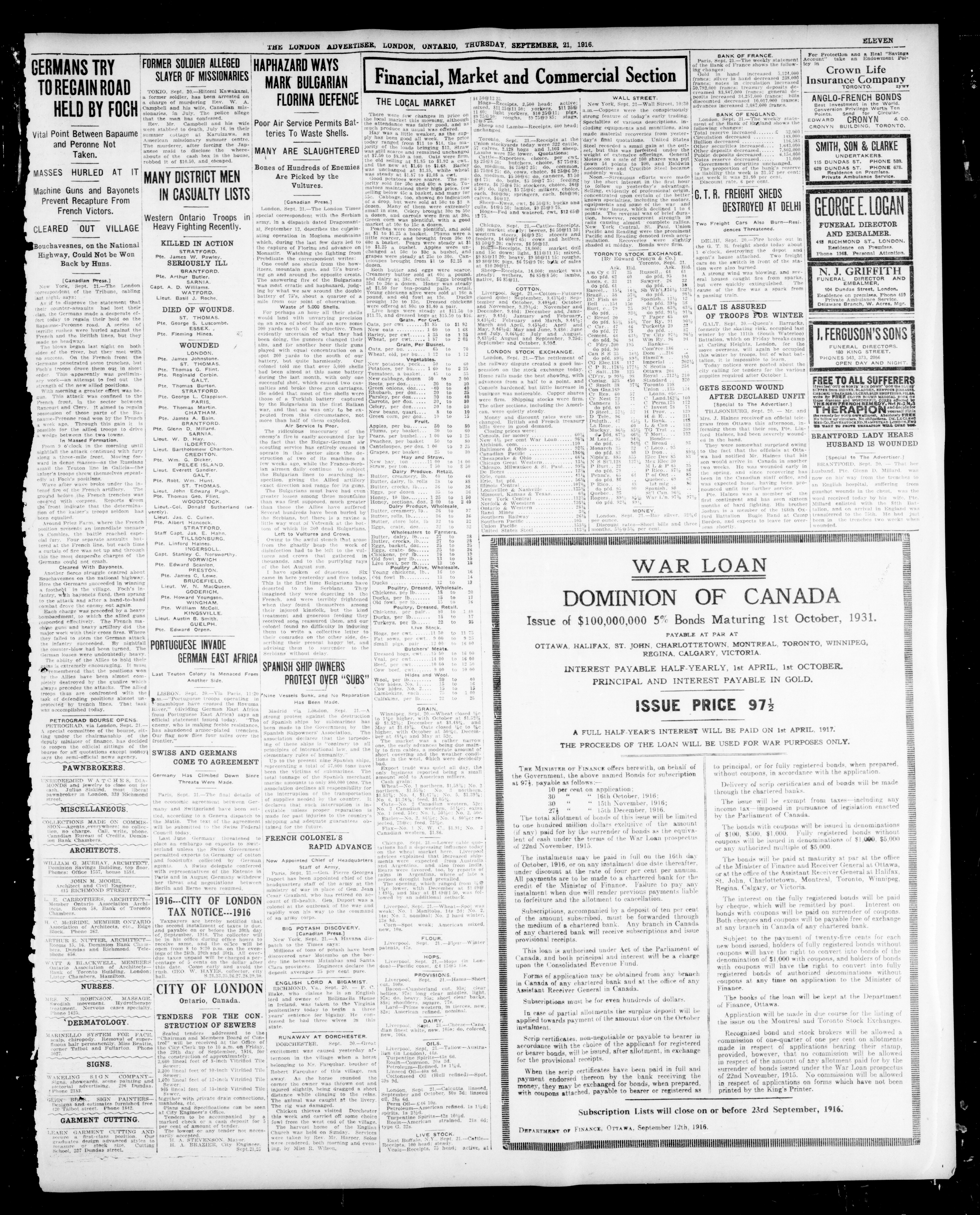 London Advertiser : 53rd Year, No. 22569 (September 21, 1916)