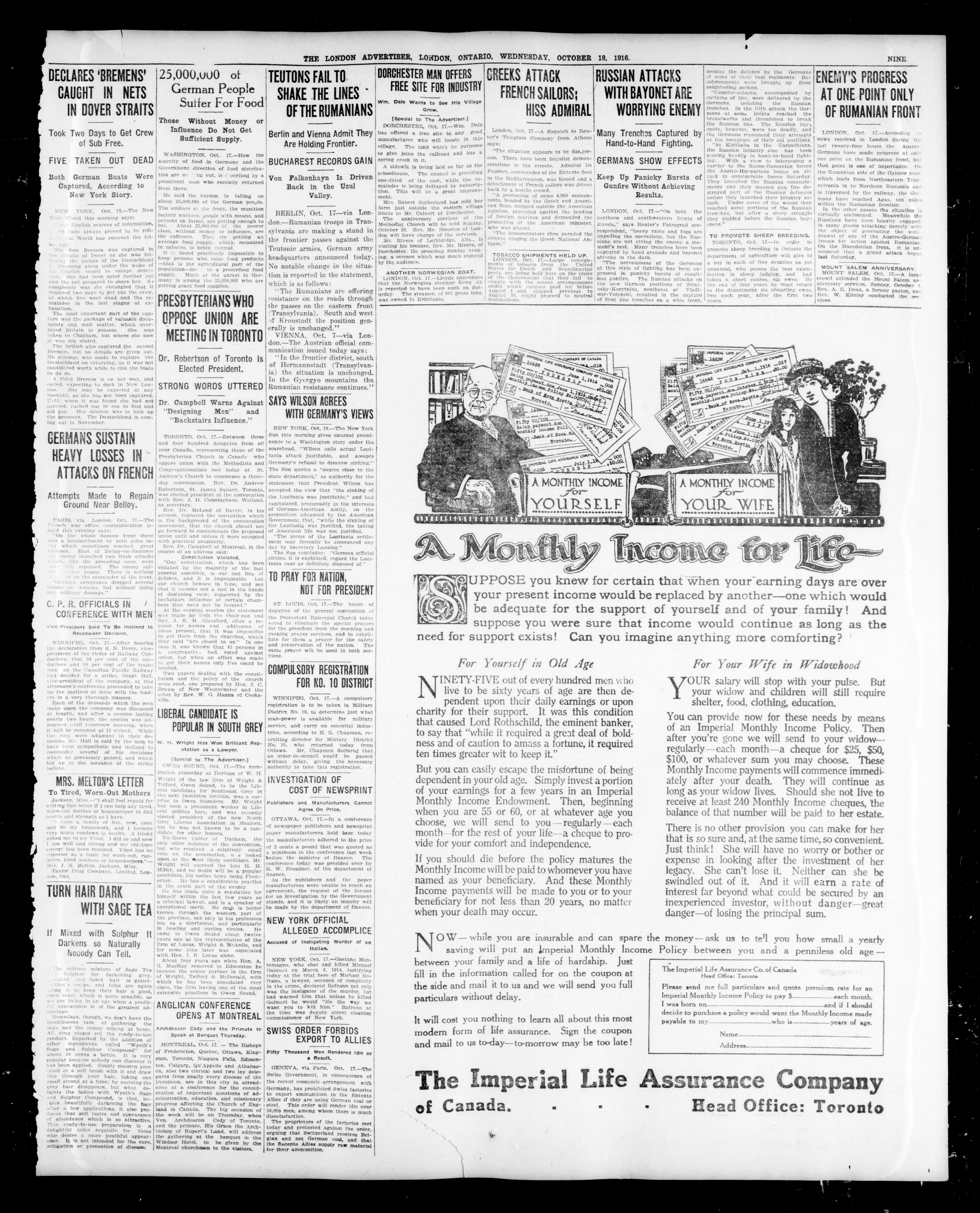 - London Advertiser : 53rd Year, No. 22592 (October 18, 1916)