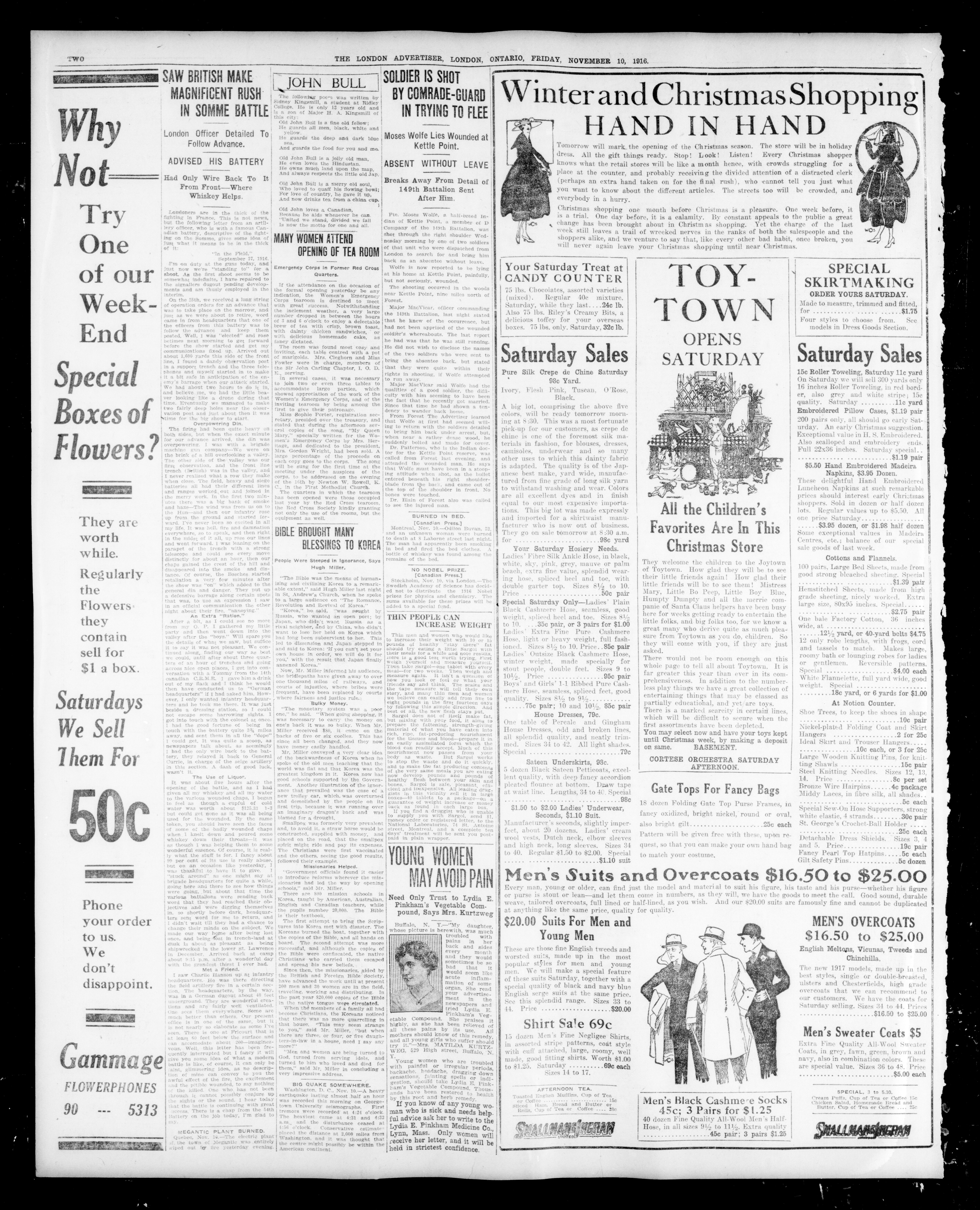 - London Advertiser : 53rd Year, No. 22612 (November 10, 1916)