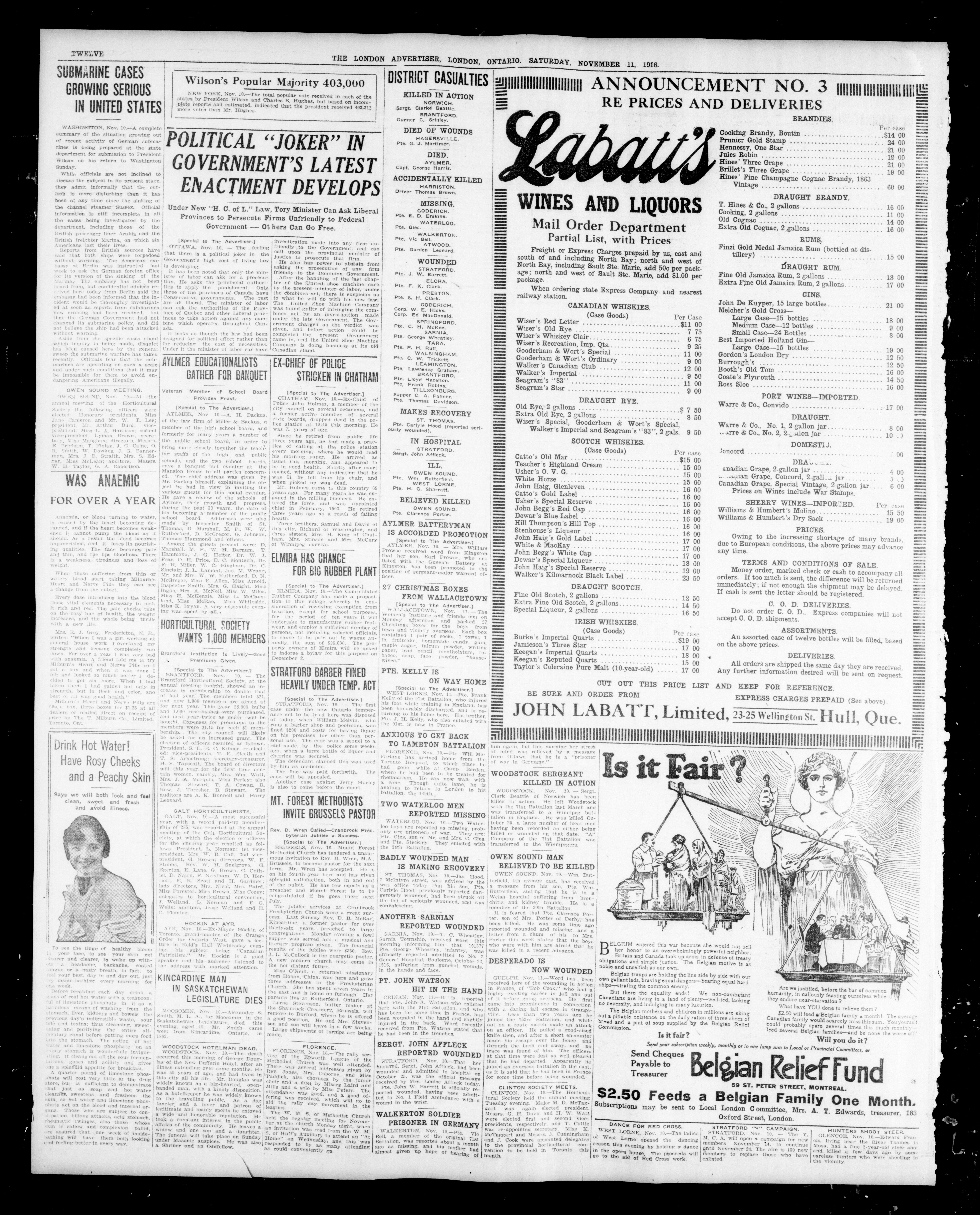 - London Advertiser : 53rd Year, No. 22613 (November 11, 1916)