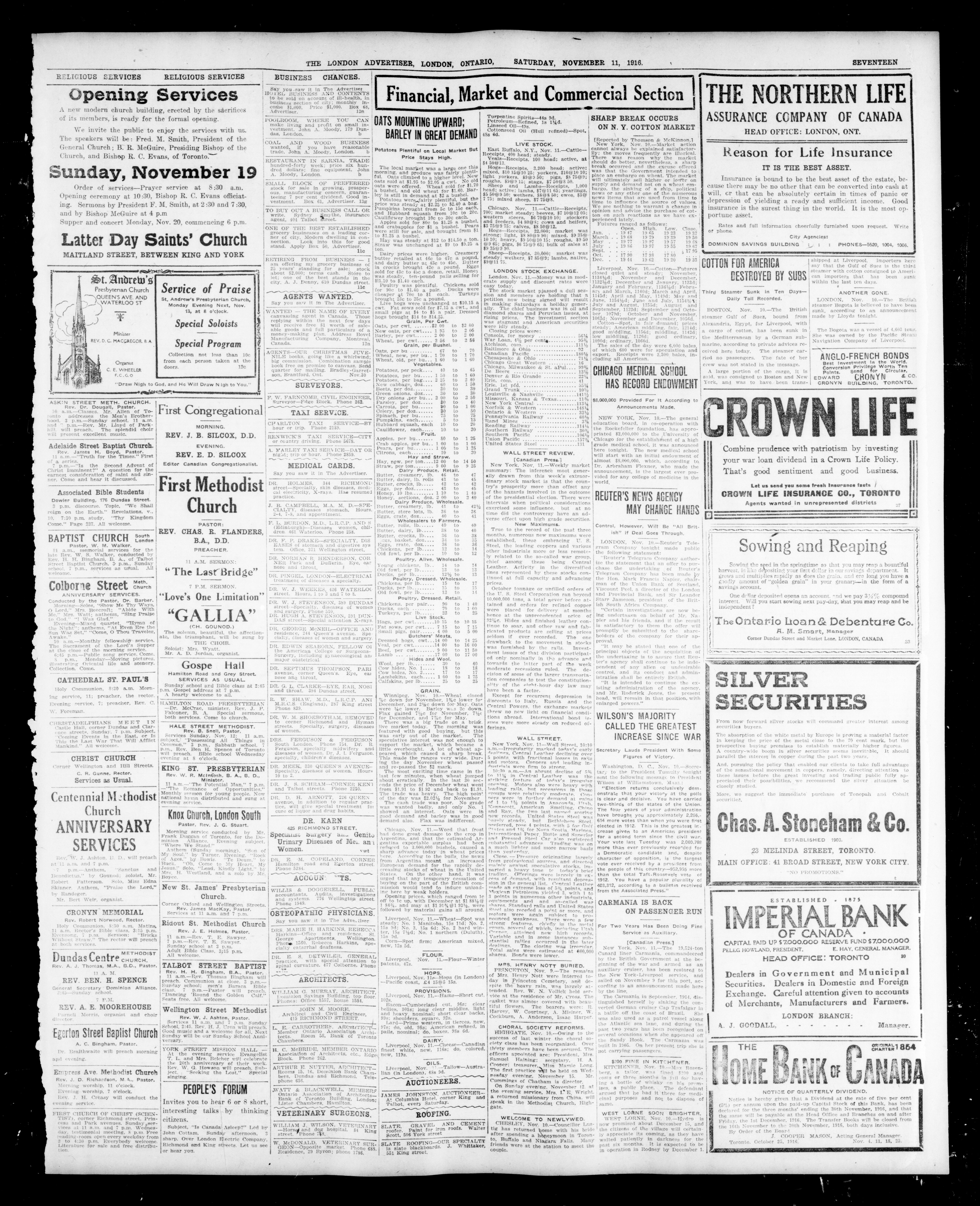 - London Advertiser : 53rd Year, No. 22613 (November 11, 1916)