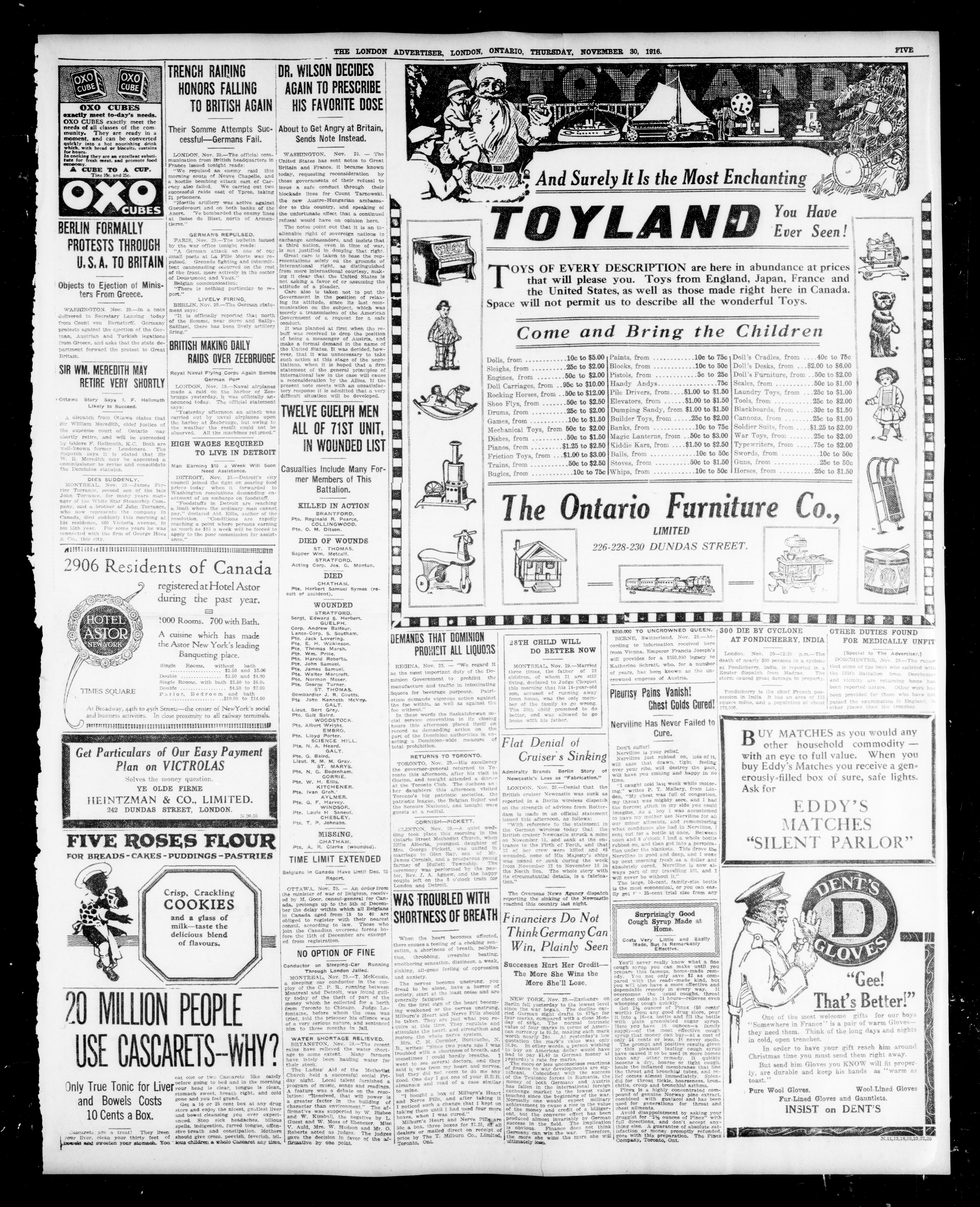 - London Advertiser : 53rd Year, No. 22629 (November 30, 1916)