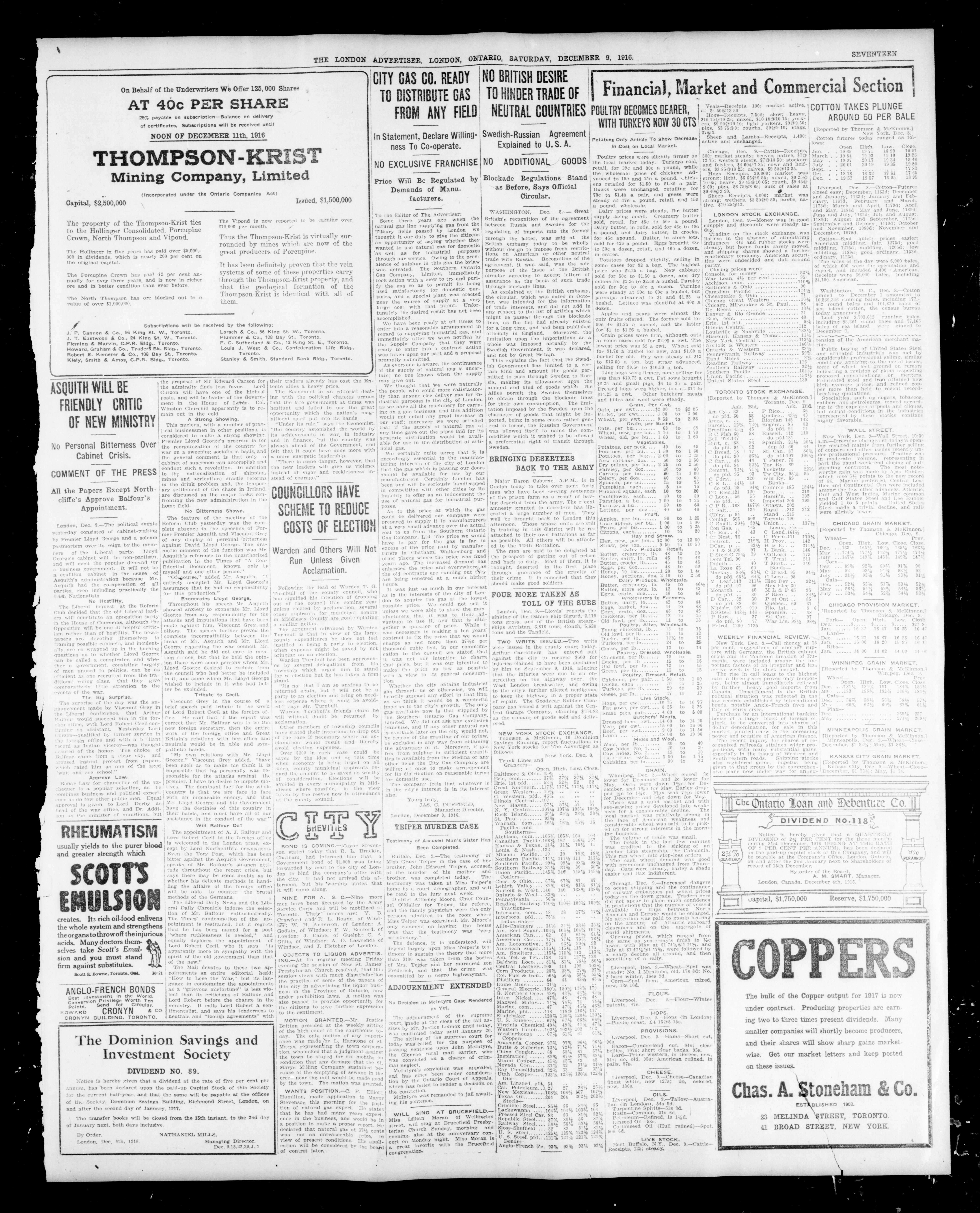 - London Advertiser : 53rd Year, No. 22637 (December 9, 1916)