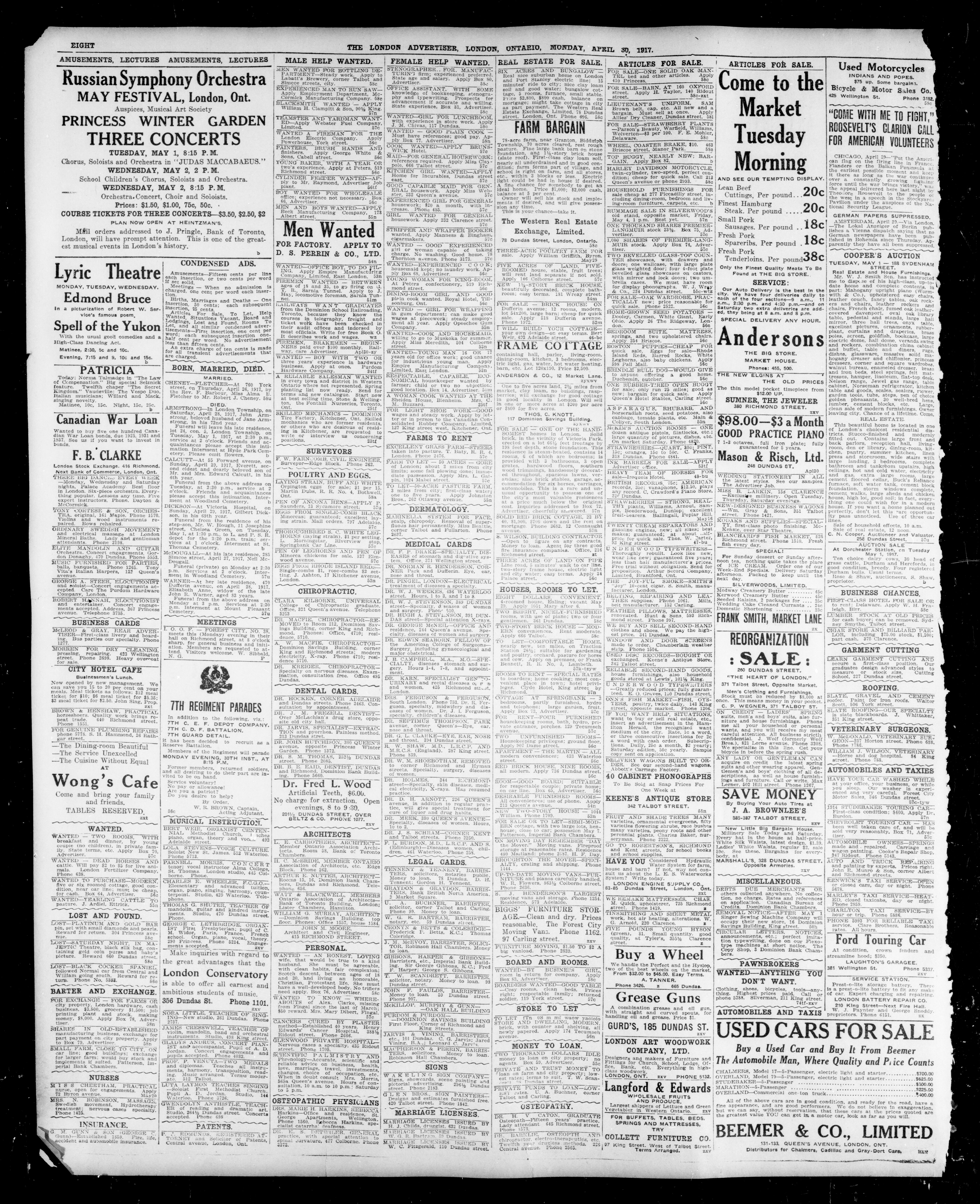 - London Advertiser : 53rd Year, No. 22758 (April 30, 1917)