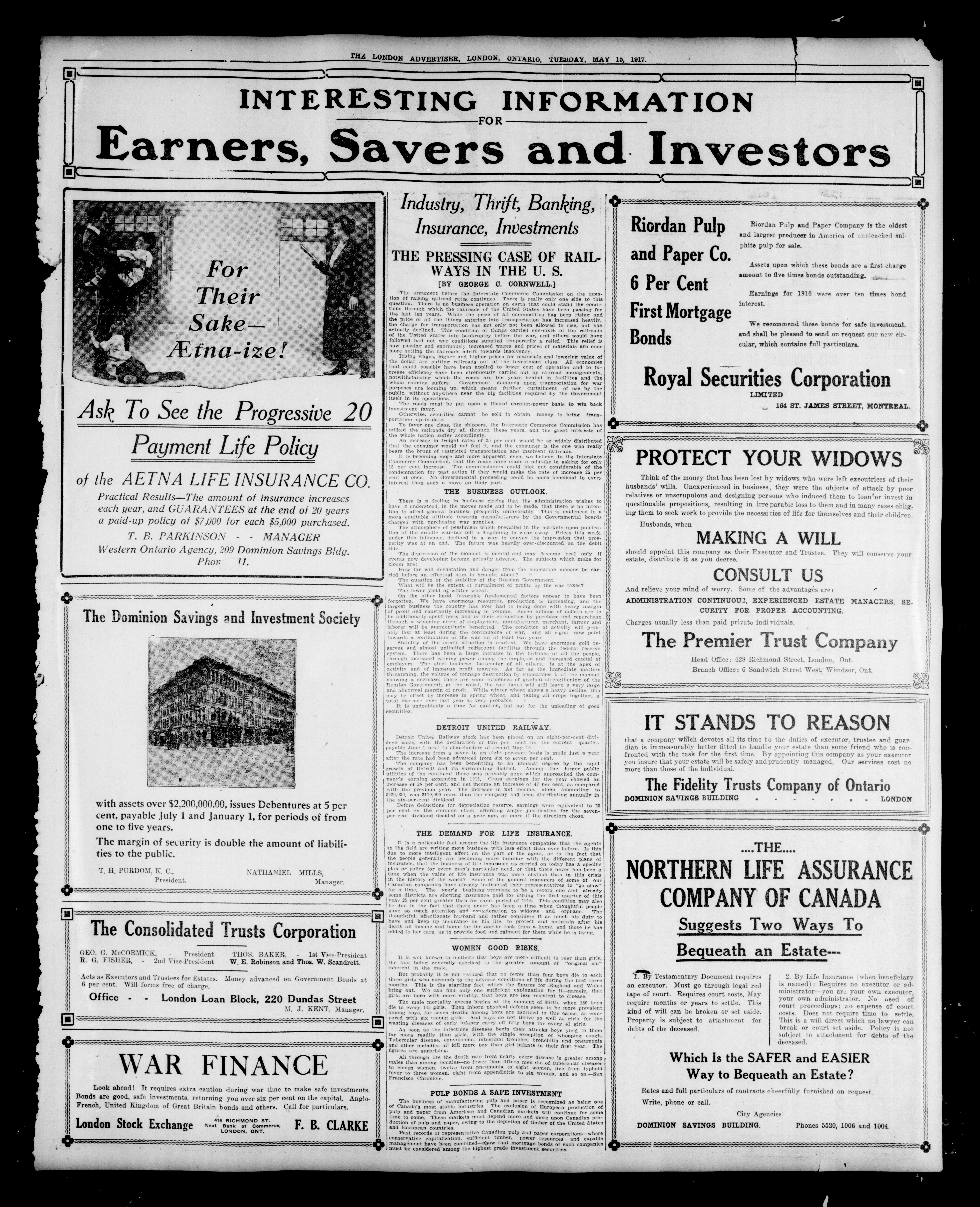 - The London Advertiser : 53rd Year, No. 22771 (May 15, 1917)
