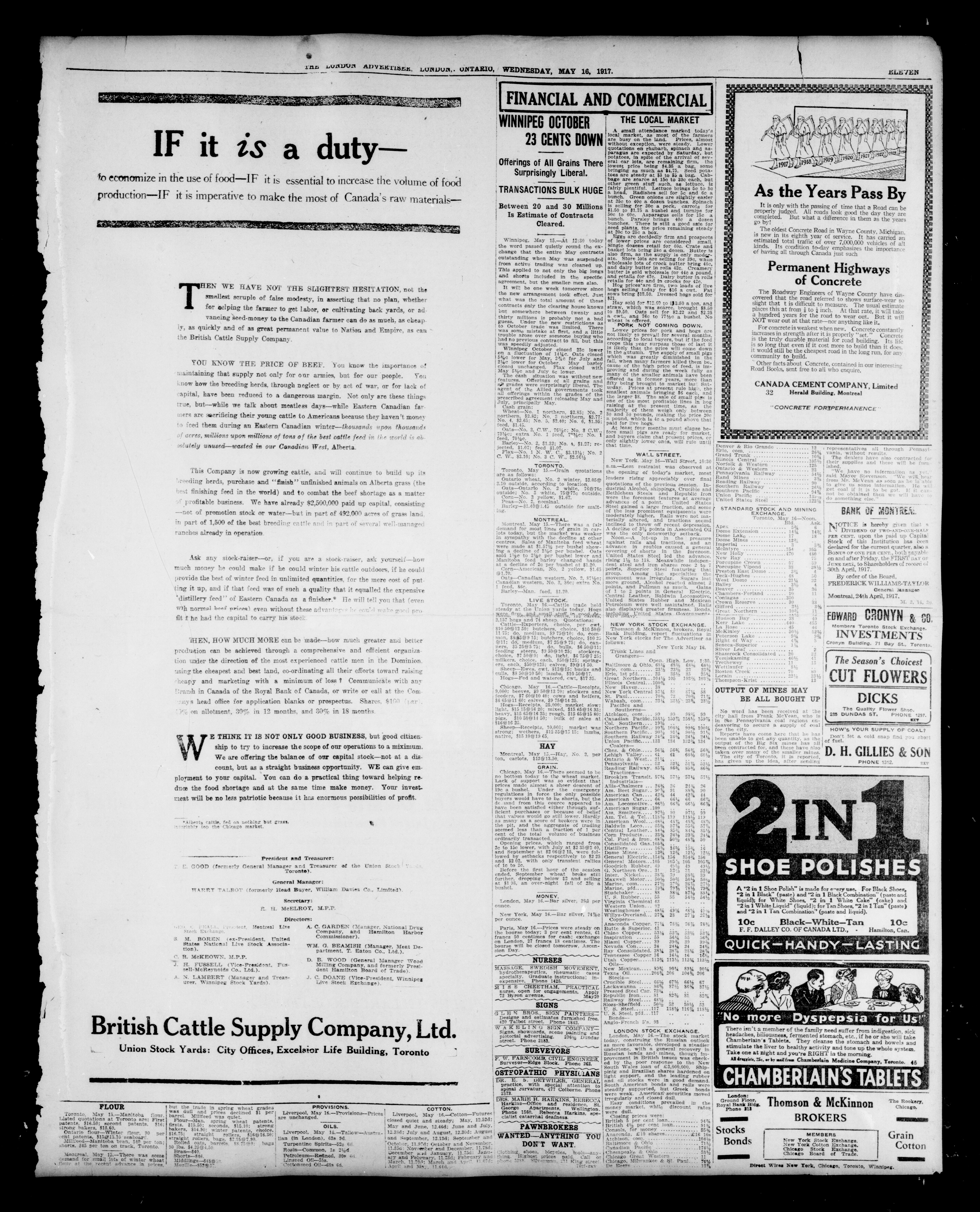 London advertiser. : The London Advertiser : 53rd Year, No. 22772 (May 16, 1917)
