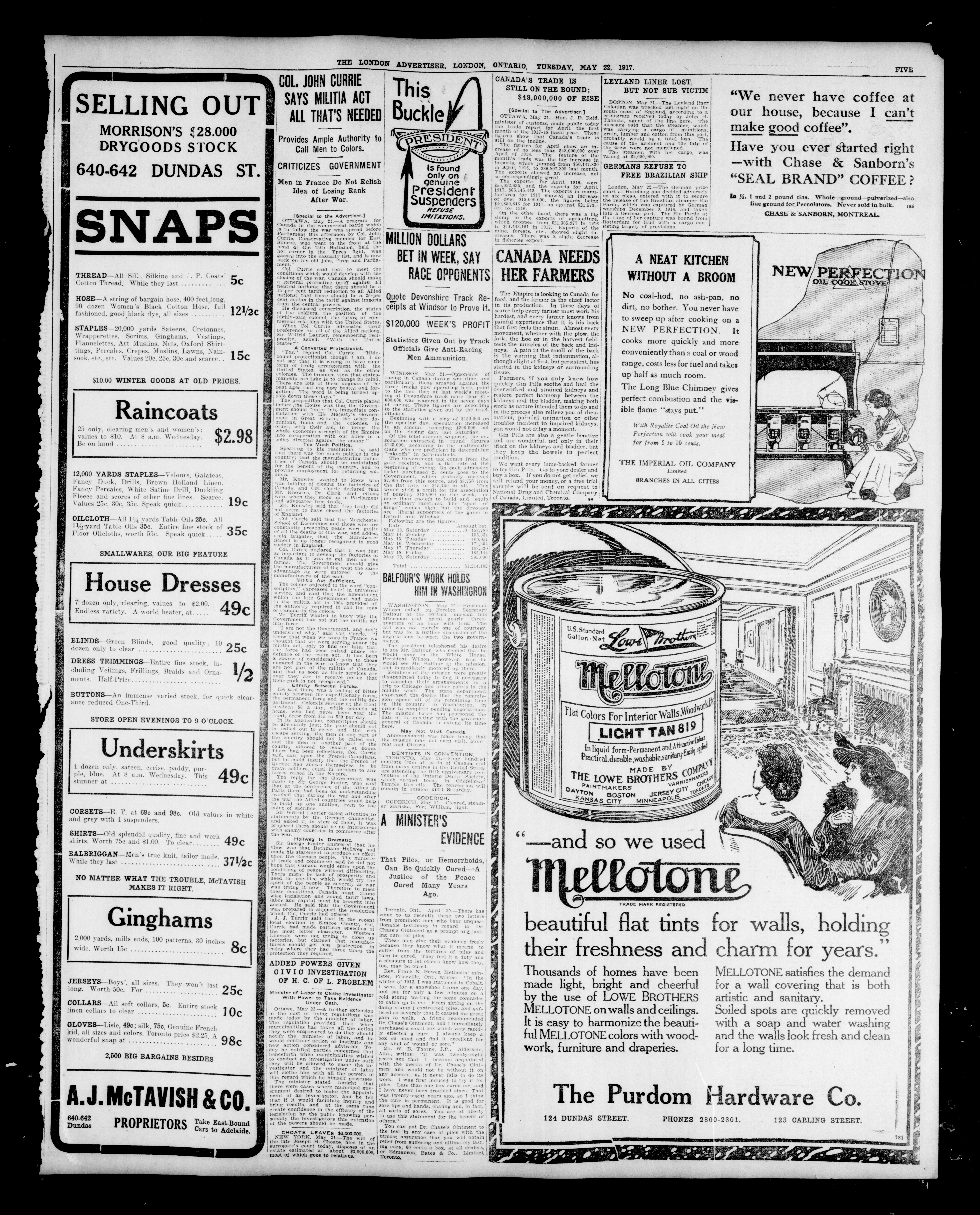 - The London Advertiser : 53rd Year, No. 22777 (May 22, 1917)