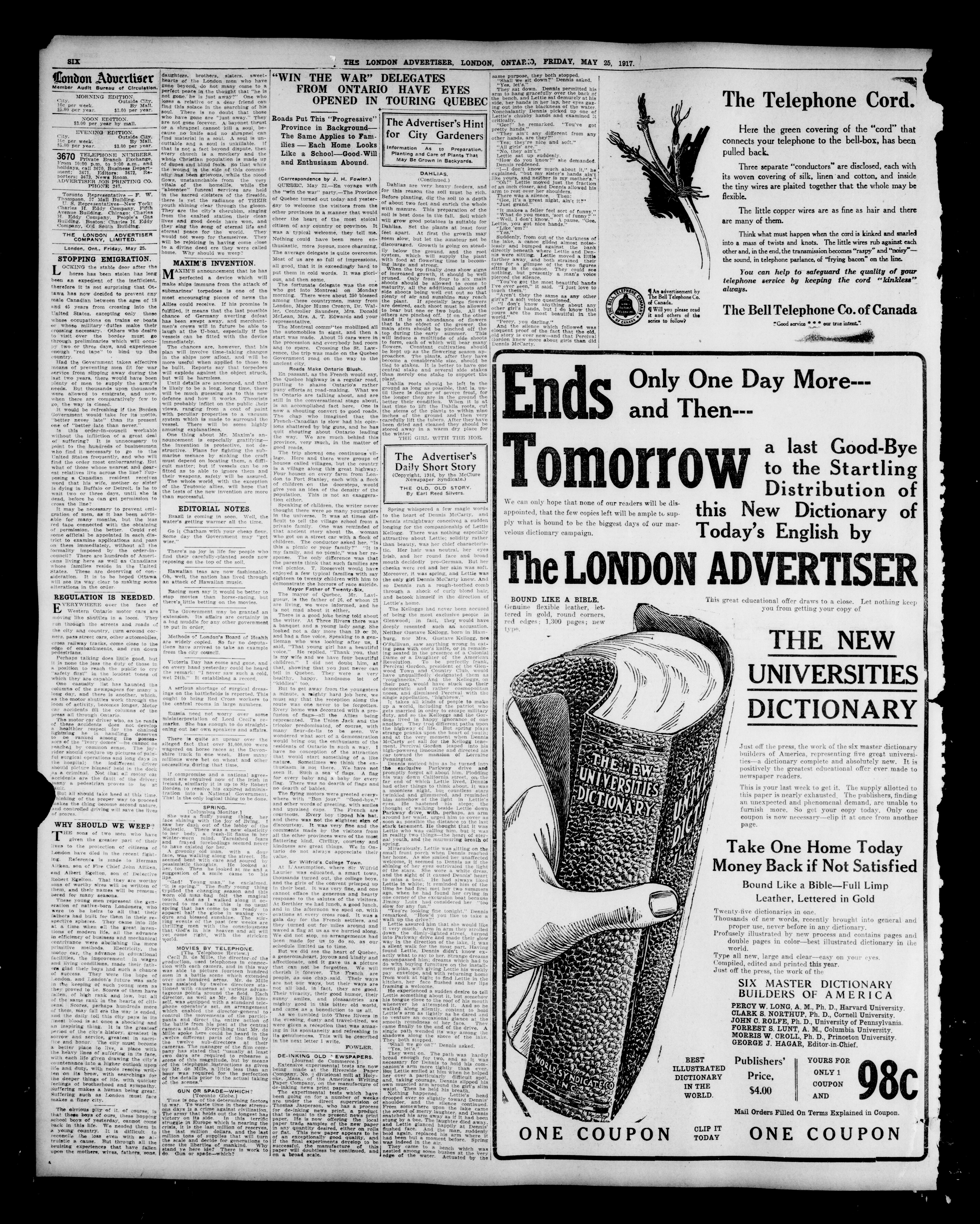 - The London Advertiser : 53rd Year, No. 22780 (May 25, 1917)