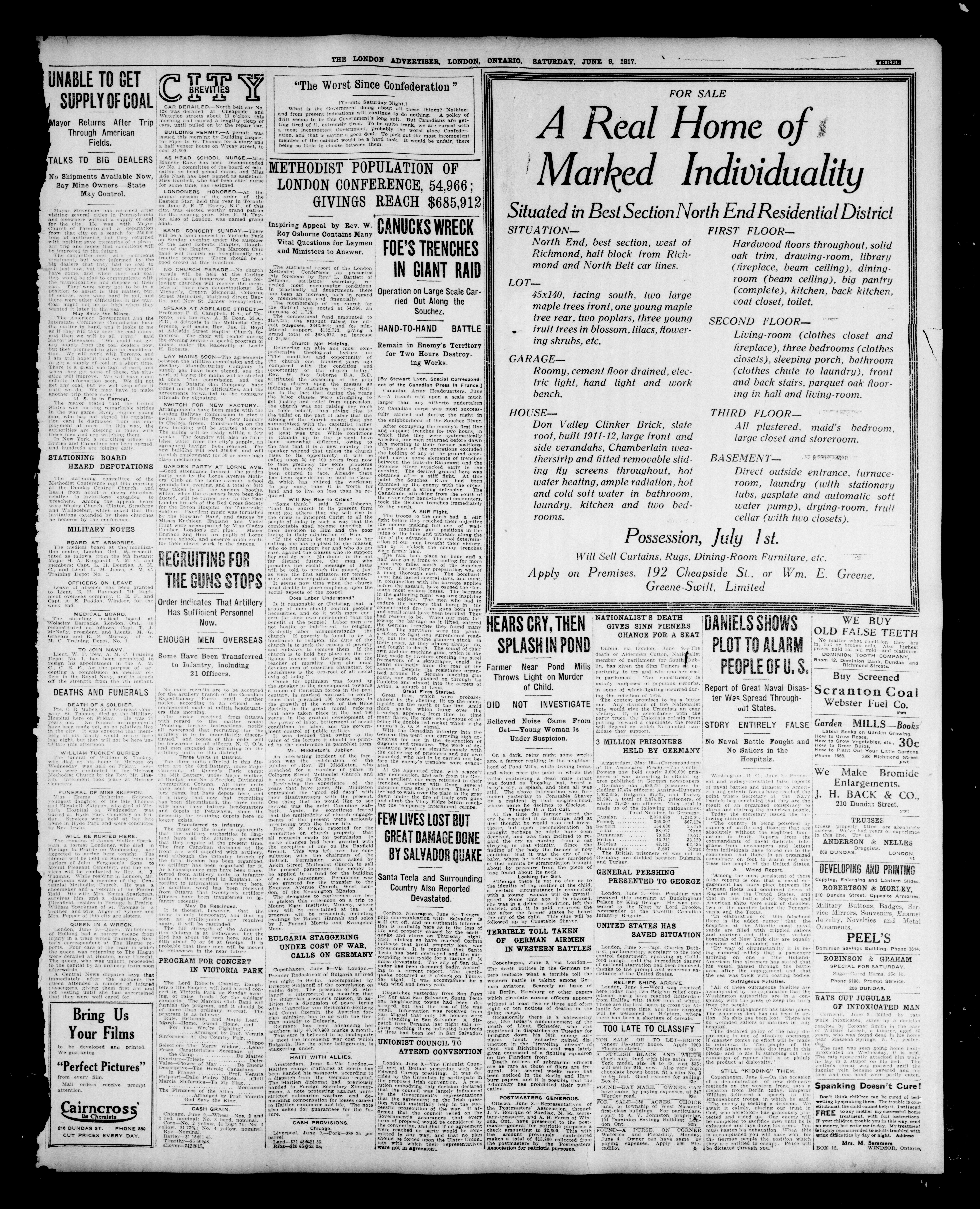 - The London Advertiser : 53rd Year, No. 22793 (June 9, 1917)