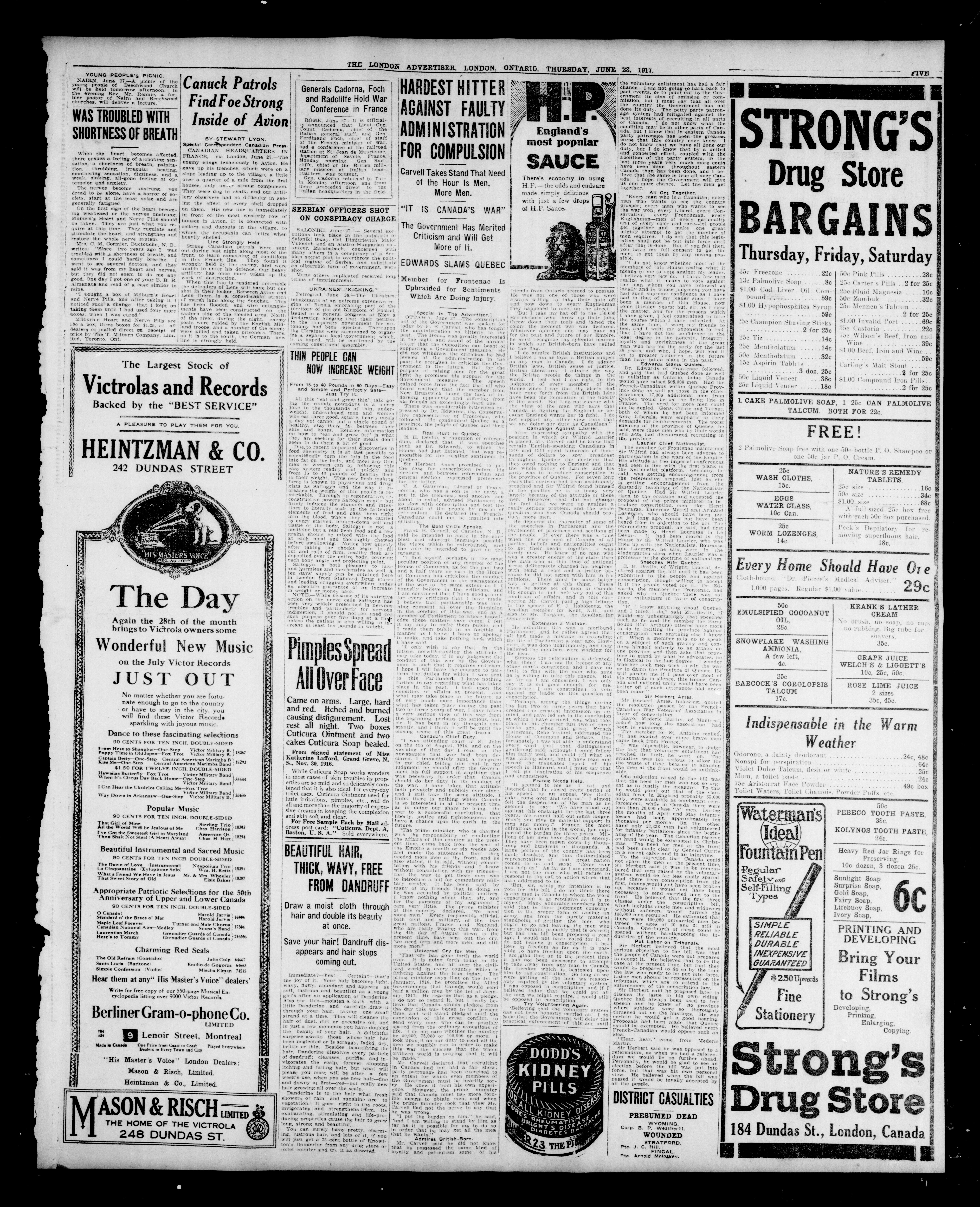 - The London Advertiser : 53rd Year, No. 22809 (June 28, 1917)