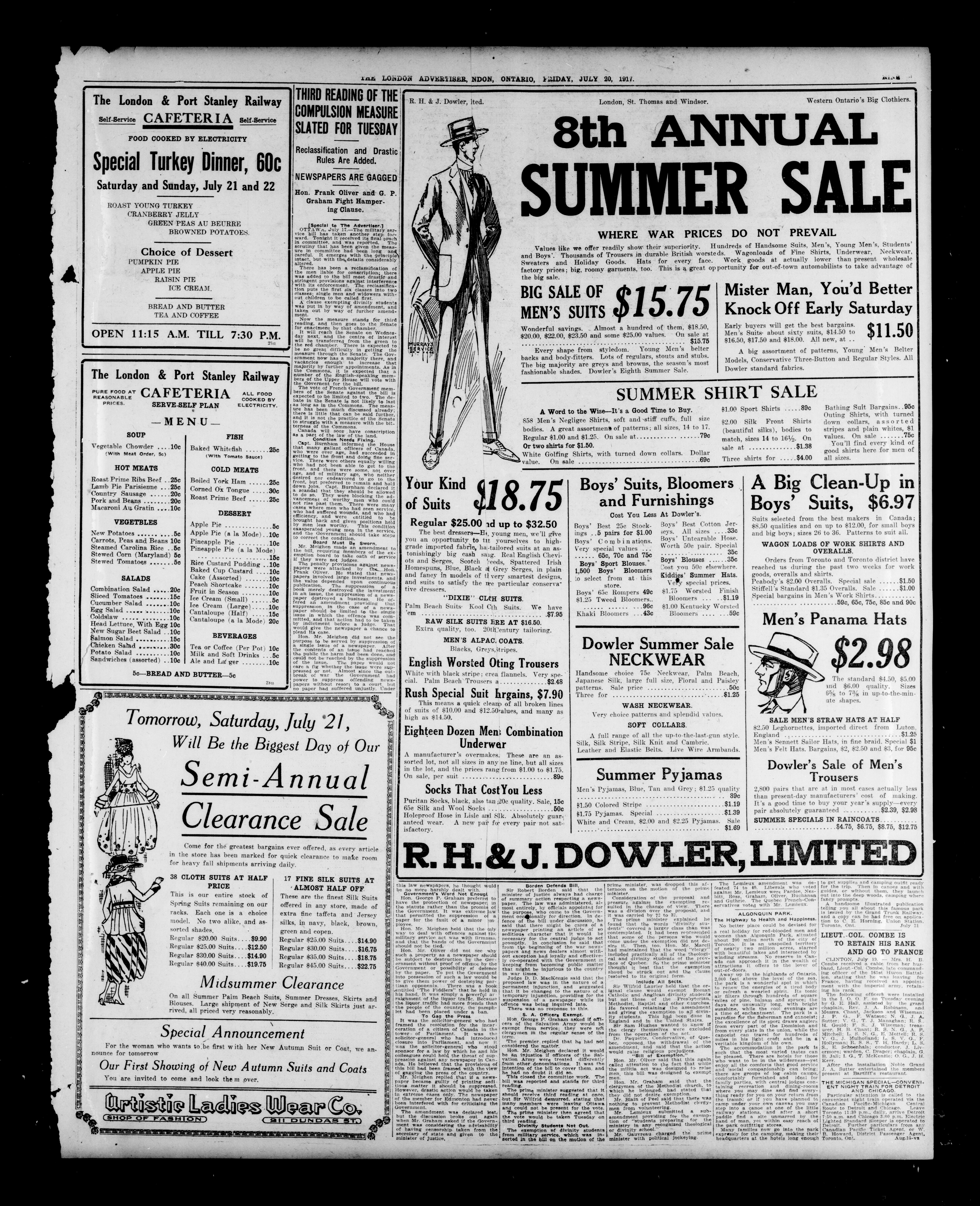 - The London Advertiser : 53rd Year, No. 22828 (July 20, 2917)