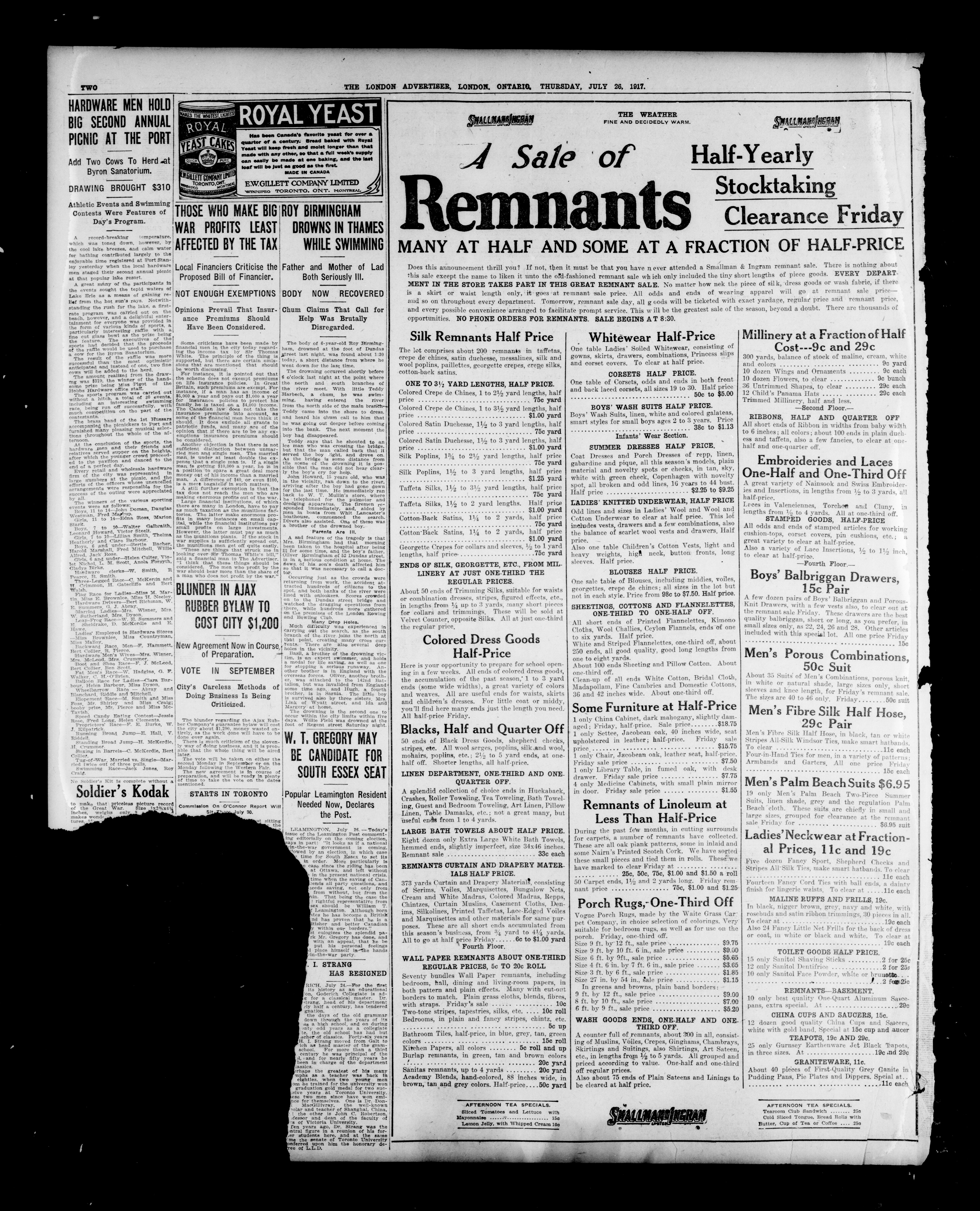 London advertiser. : The London Advertiser : 53rd Year, No. 22833 (July 26, 1917)