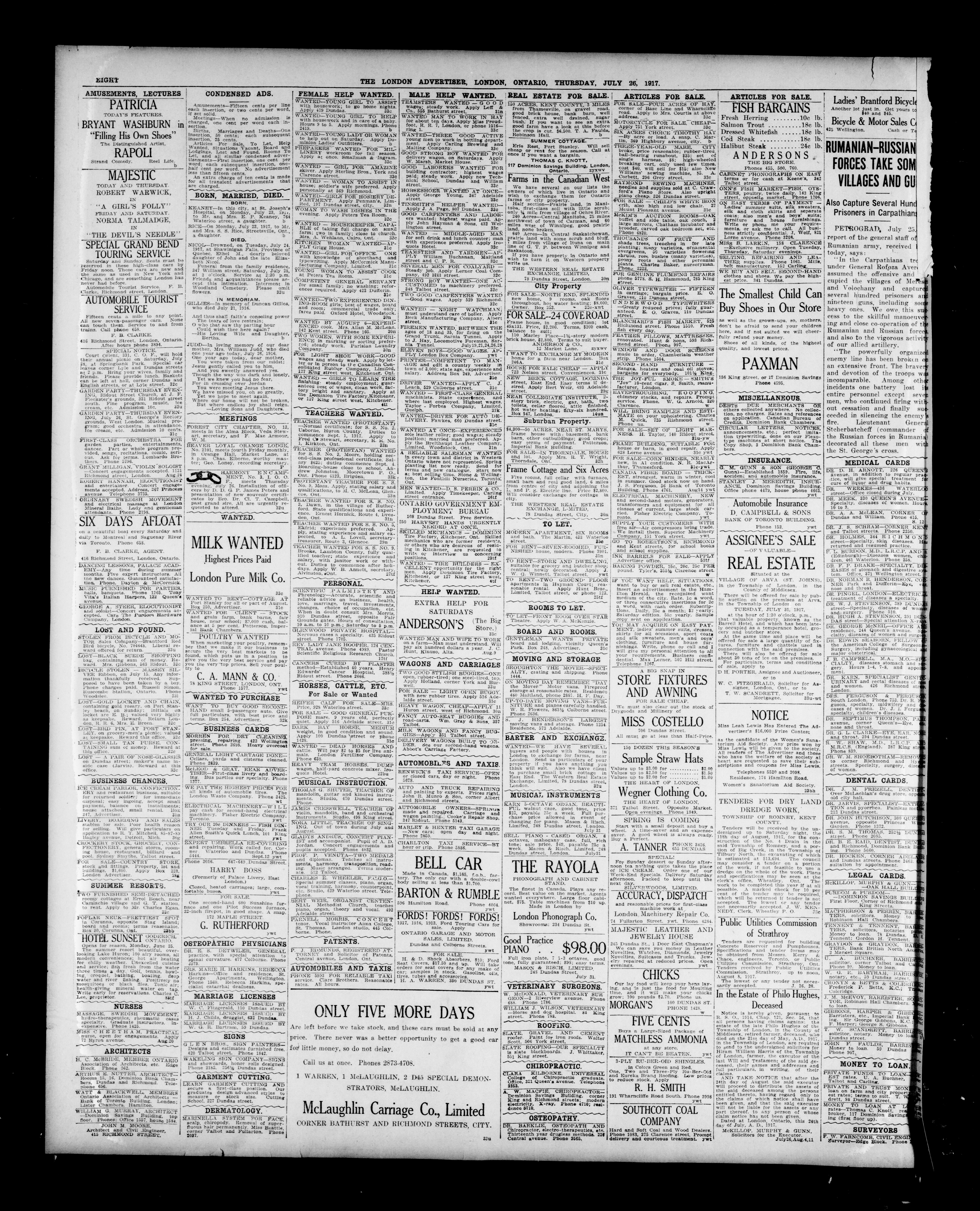- The London Advertiser : 53rd Year, No. 22833 (July 26, 1917)