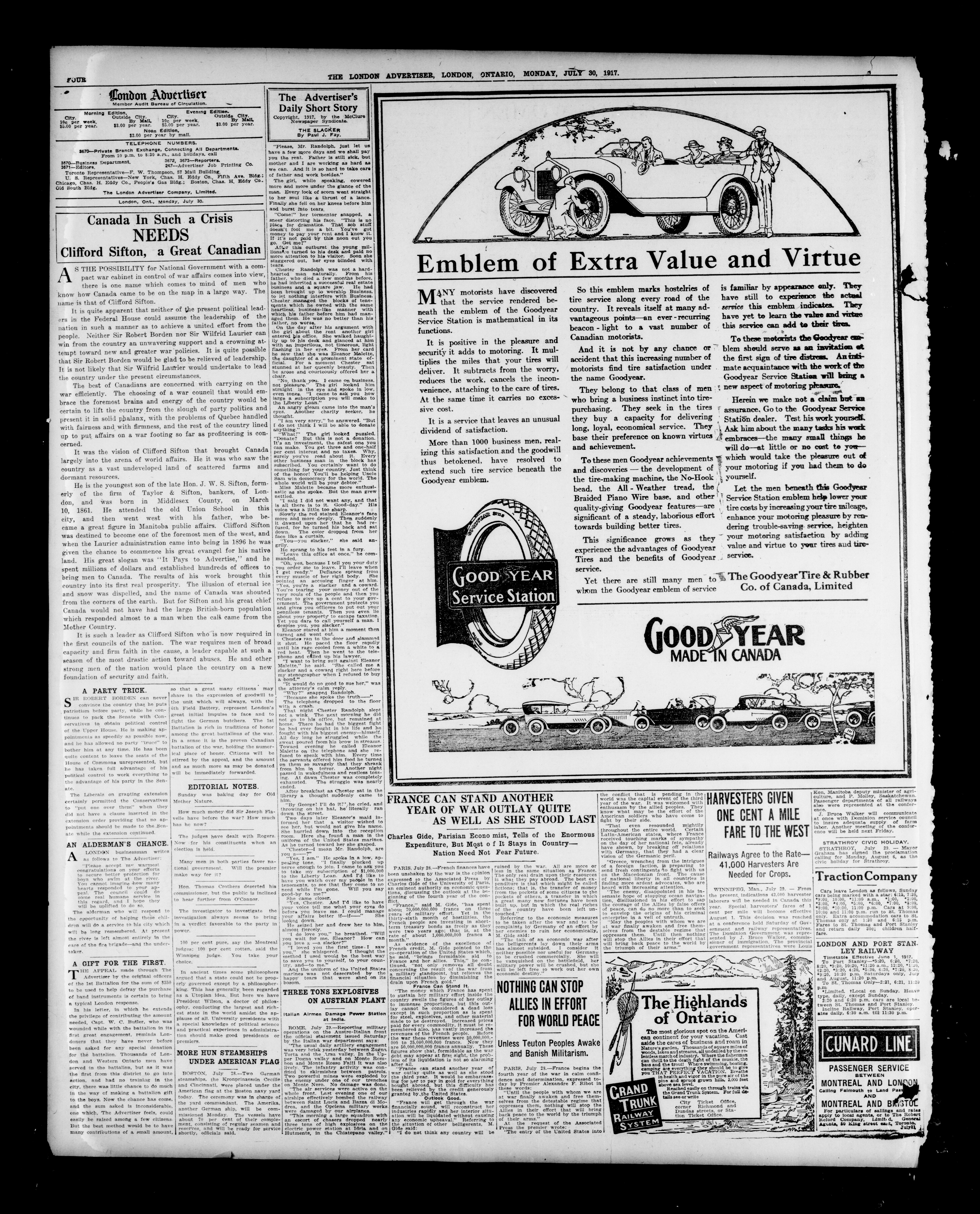 - The London Advertiser : 53rd Year, No. 22836 (July 30, 1917)