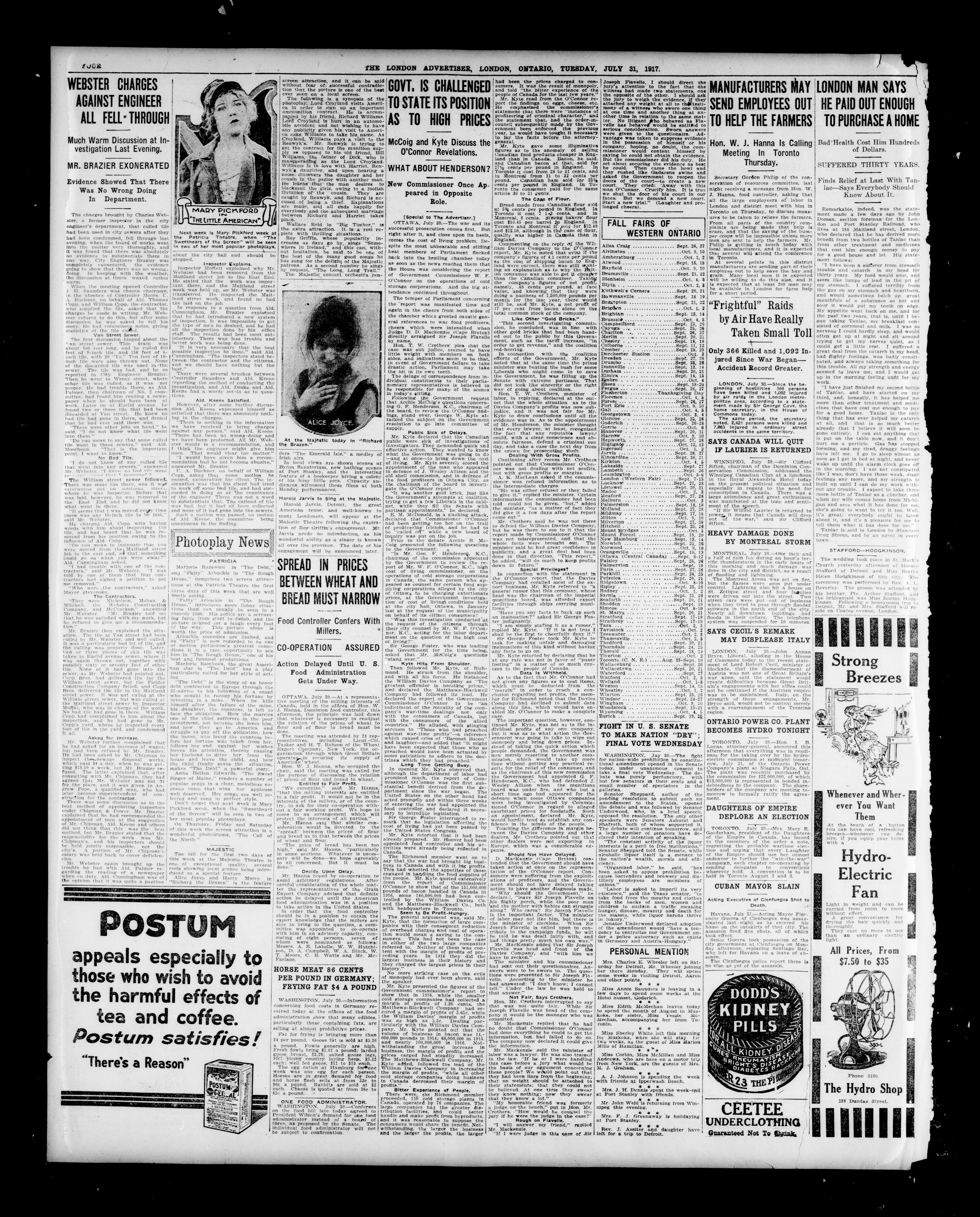 - The London Advertiser : 53rd Year, No. 22837 (July 31, 1917)