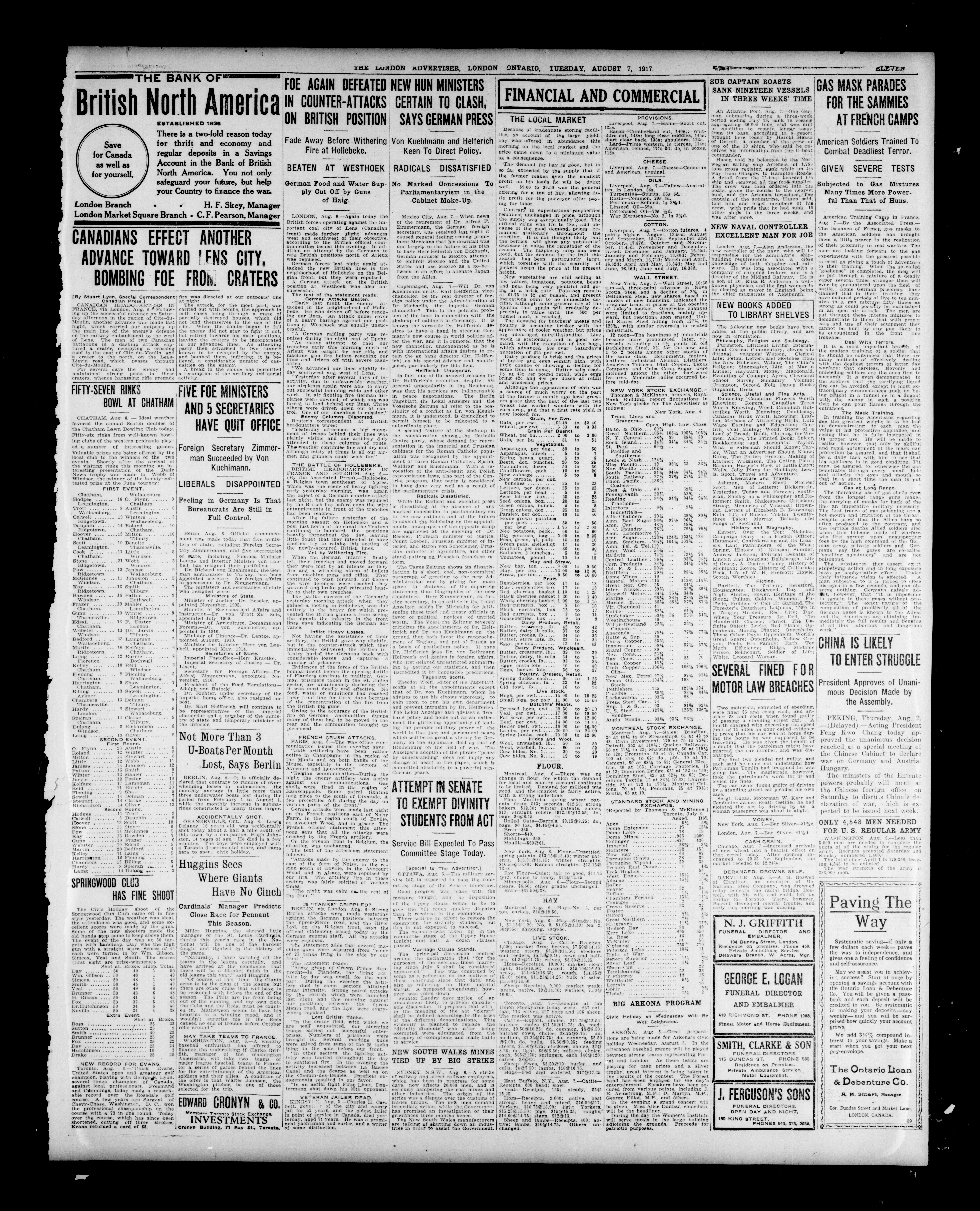 London advertiser. : The London Advertiser : 53rd Year, No. 22843 (August 7, 1917)