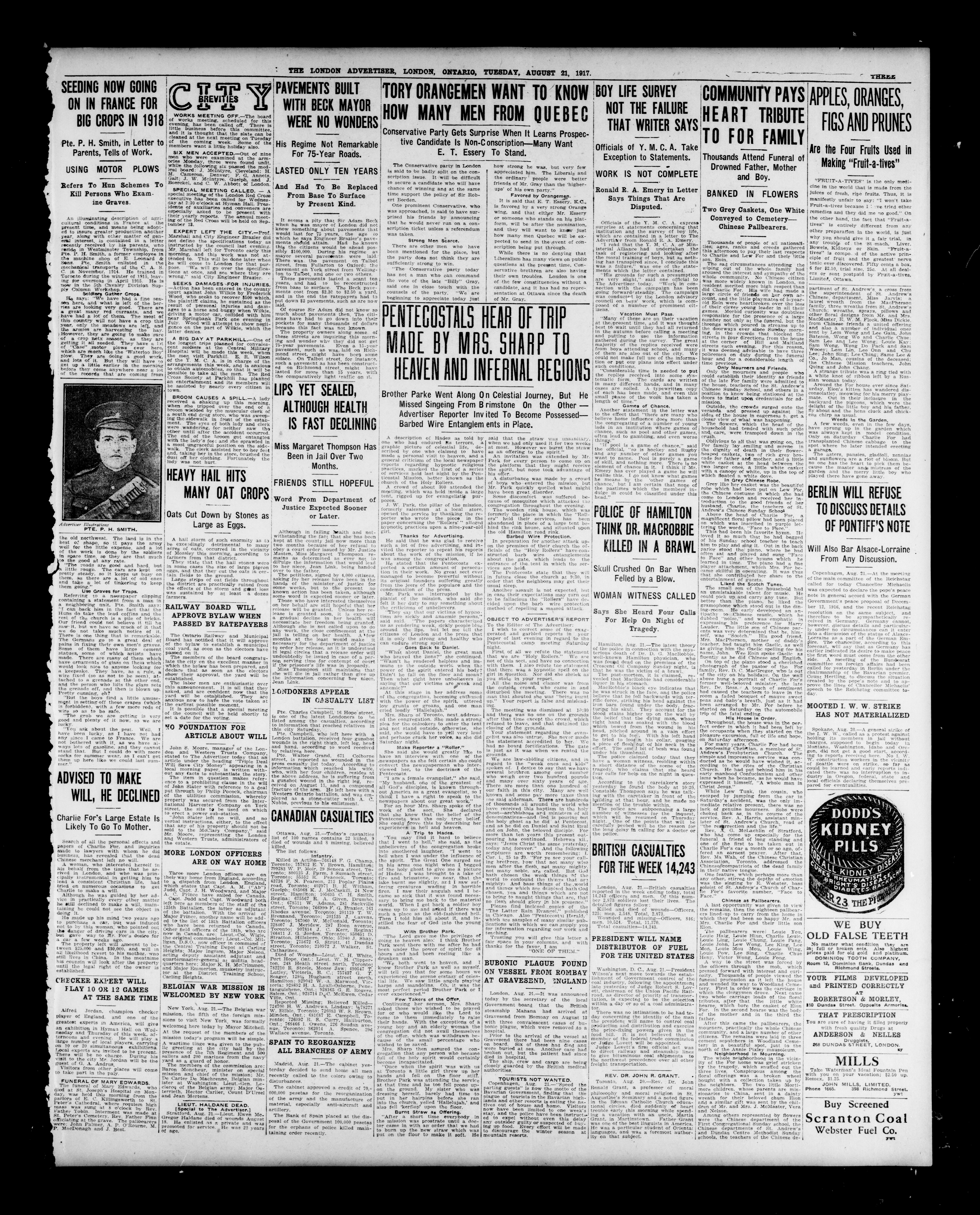 - The London Advertiser : 53rd Year, No. 22855 (August 21, 1917)