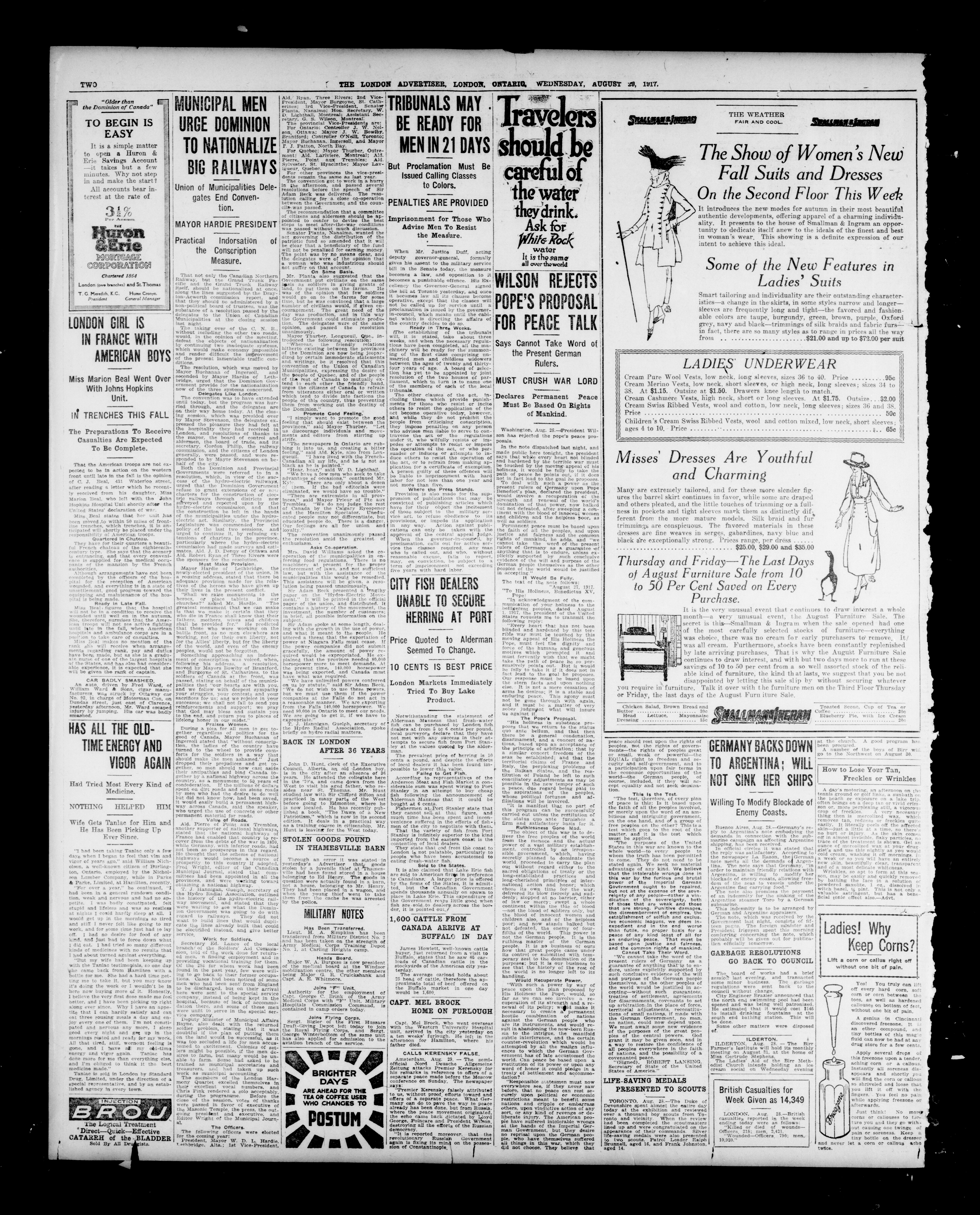 - The London Advertiser : 53rd Year, No. 22862 (August 29, 1917)