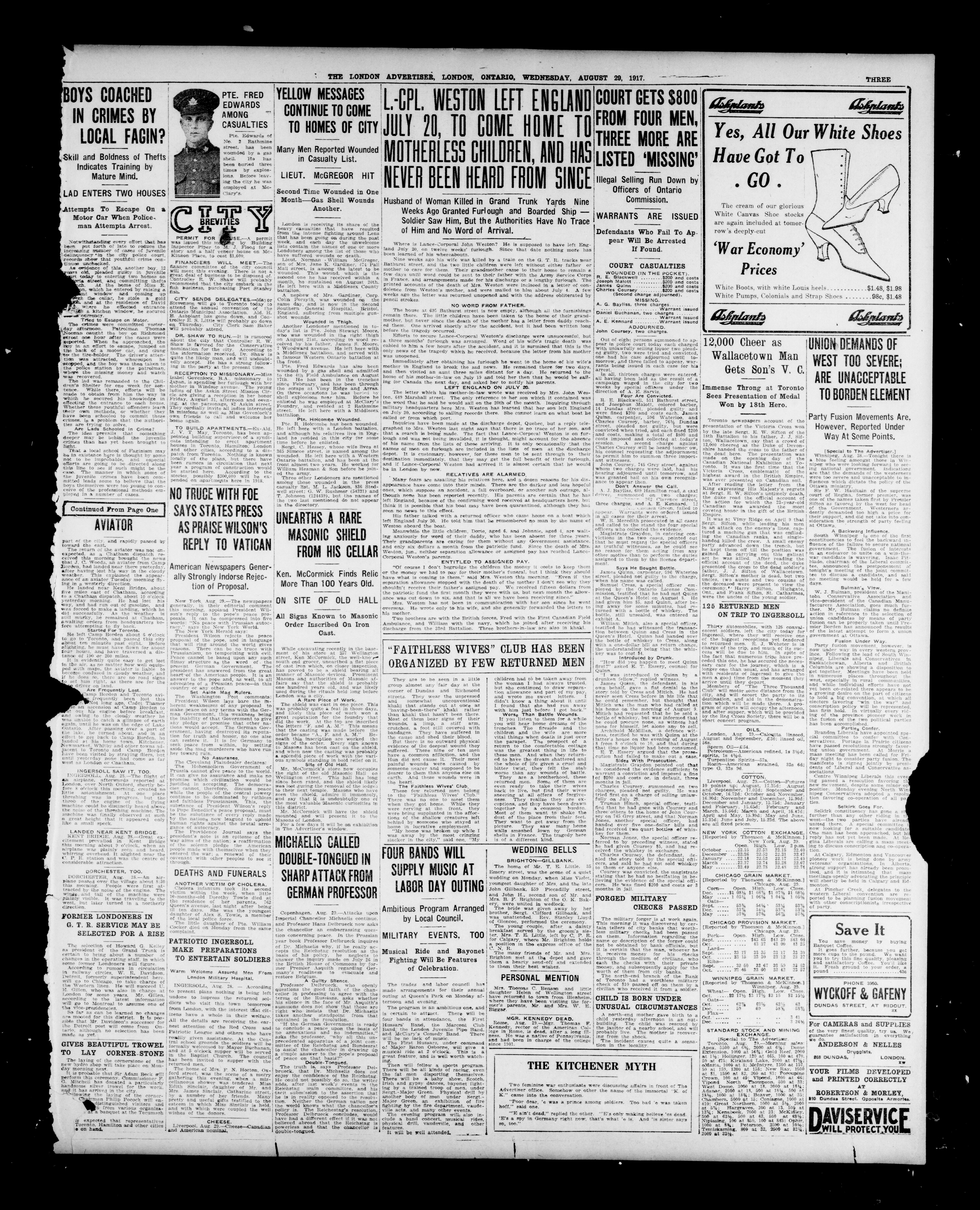 - The London Advertiser : 53rd Year, No. 22862 (August 29, 1917)