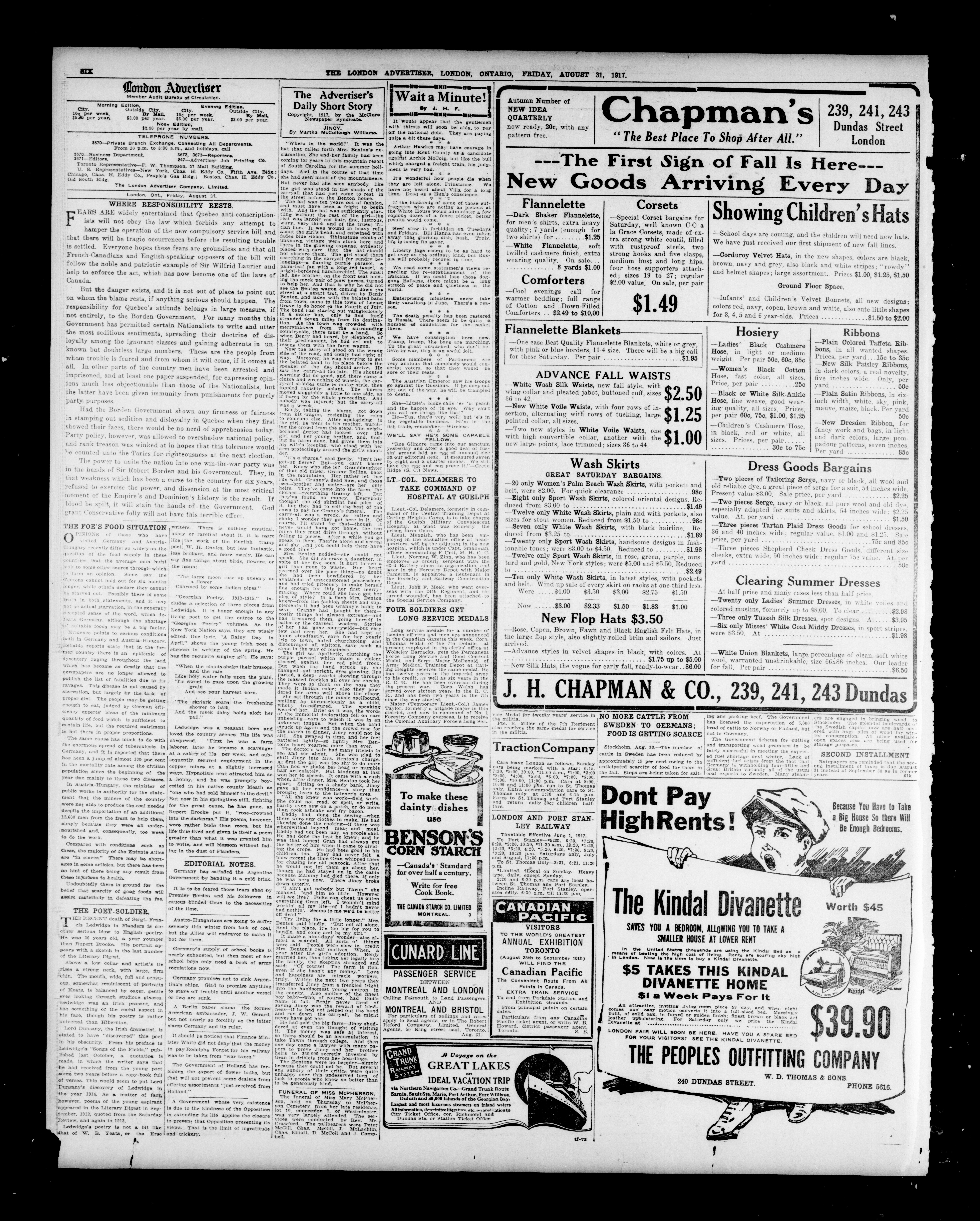 - The London Advertiser : 53rd Year, No. 22864 (August 31, 1917)