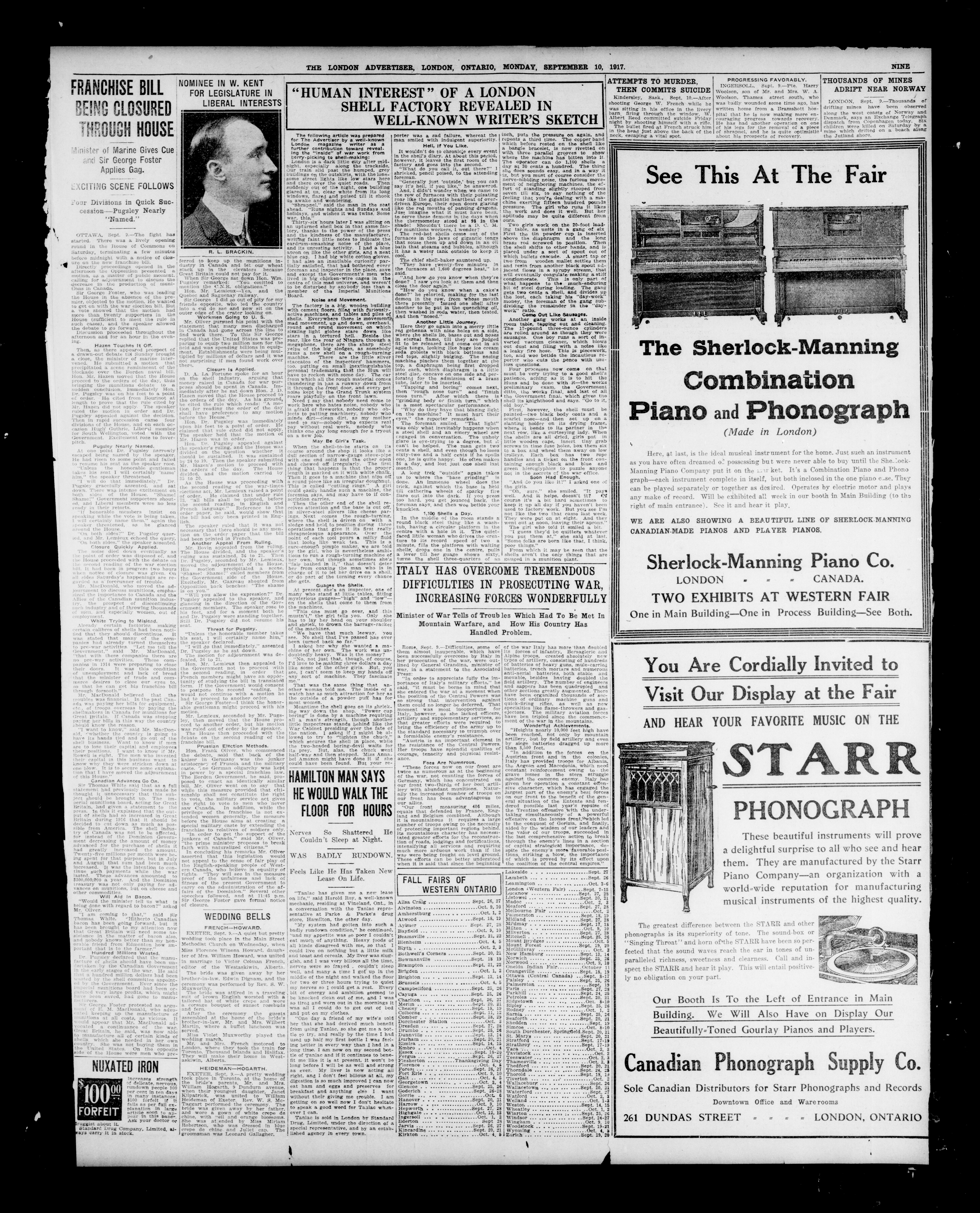 - The London Advertiser : 53rd Year, No. 22872 (September 10, 1917)