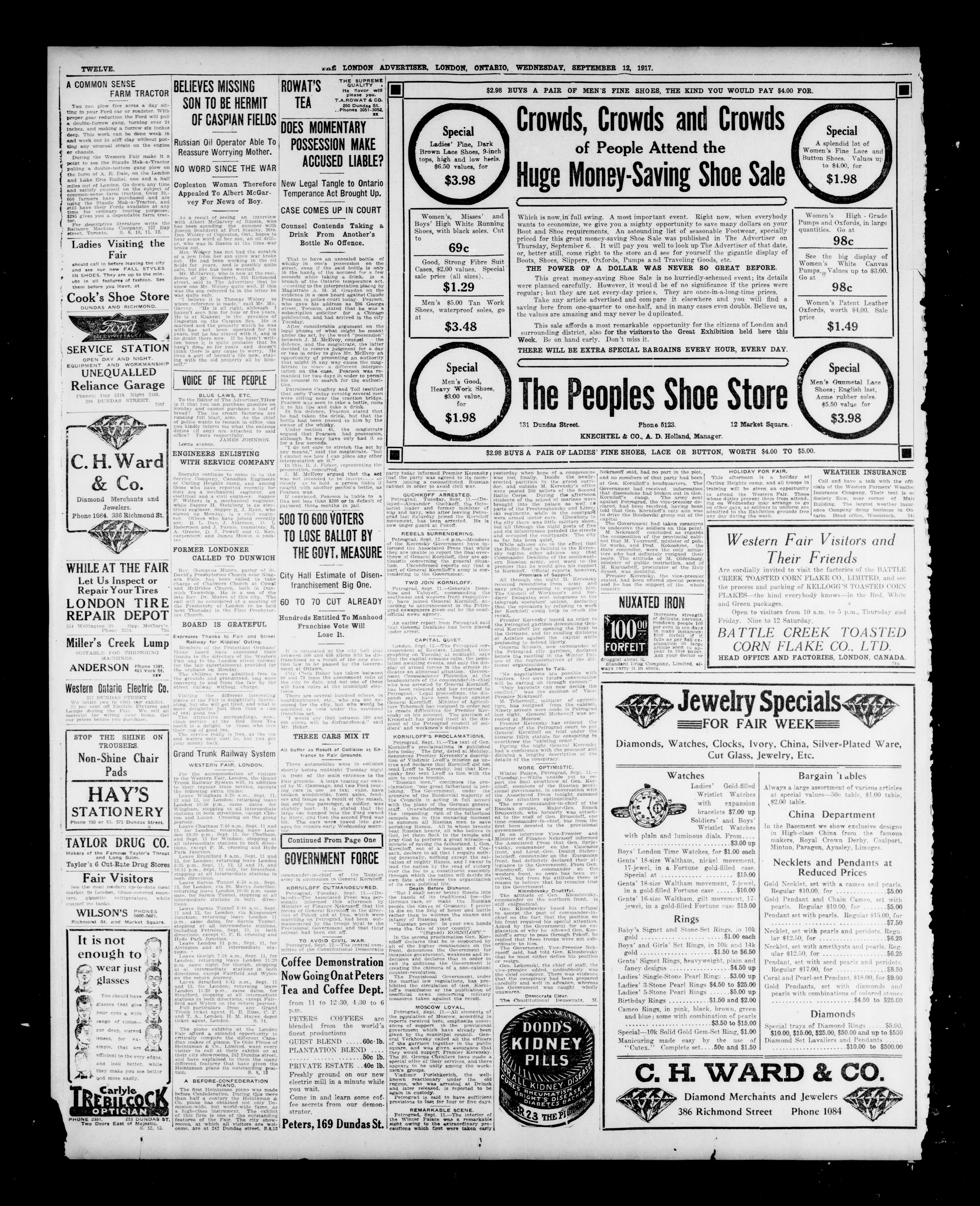 - The London Advertiser : 53rd Year, No. 22874 (September 12, 1917)