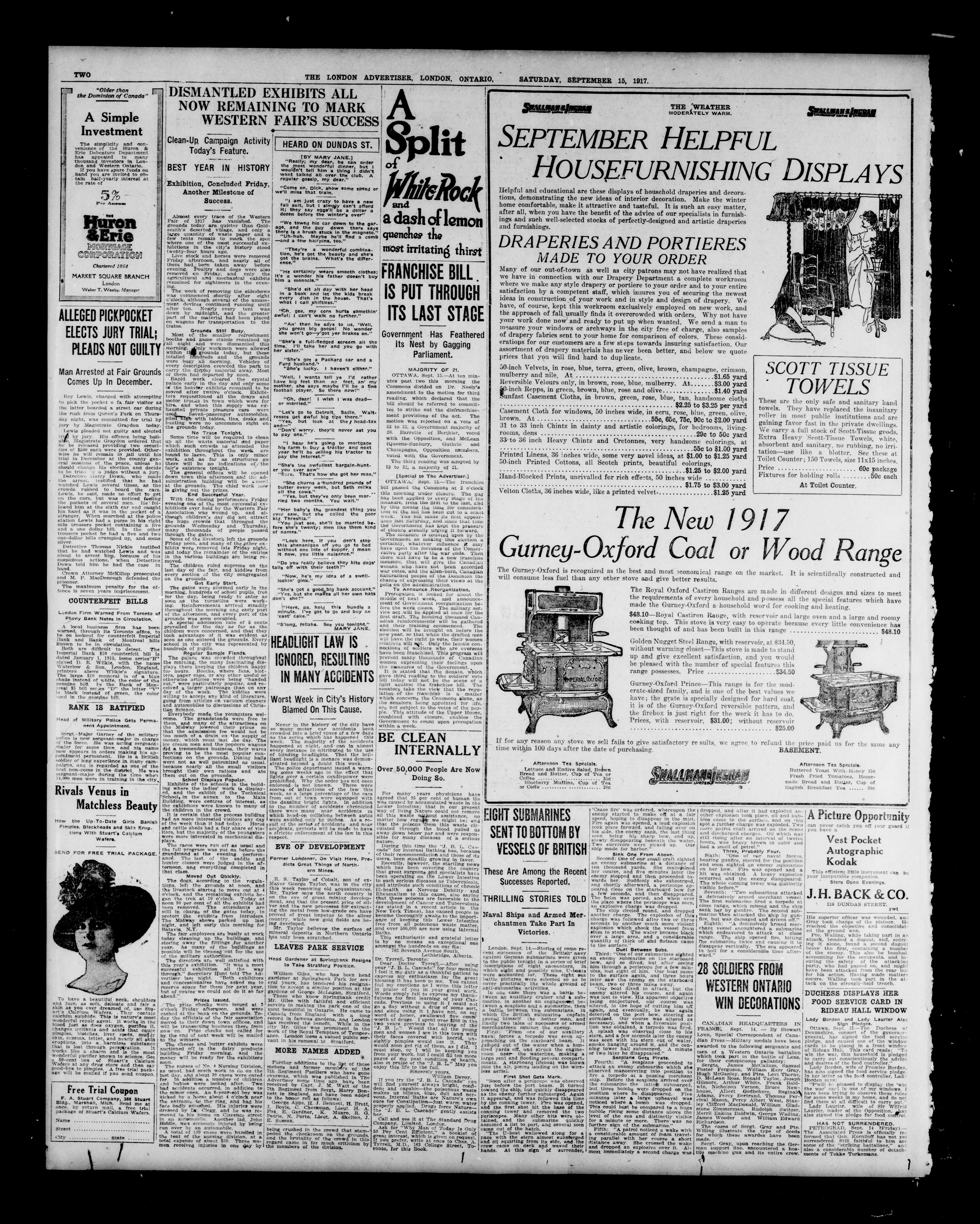 - The London Advertiser : 53rd Year, No. 22877 (September 15, 1917)