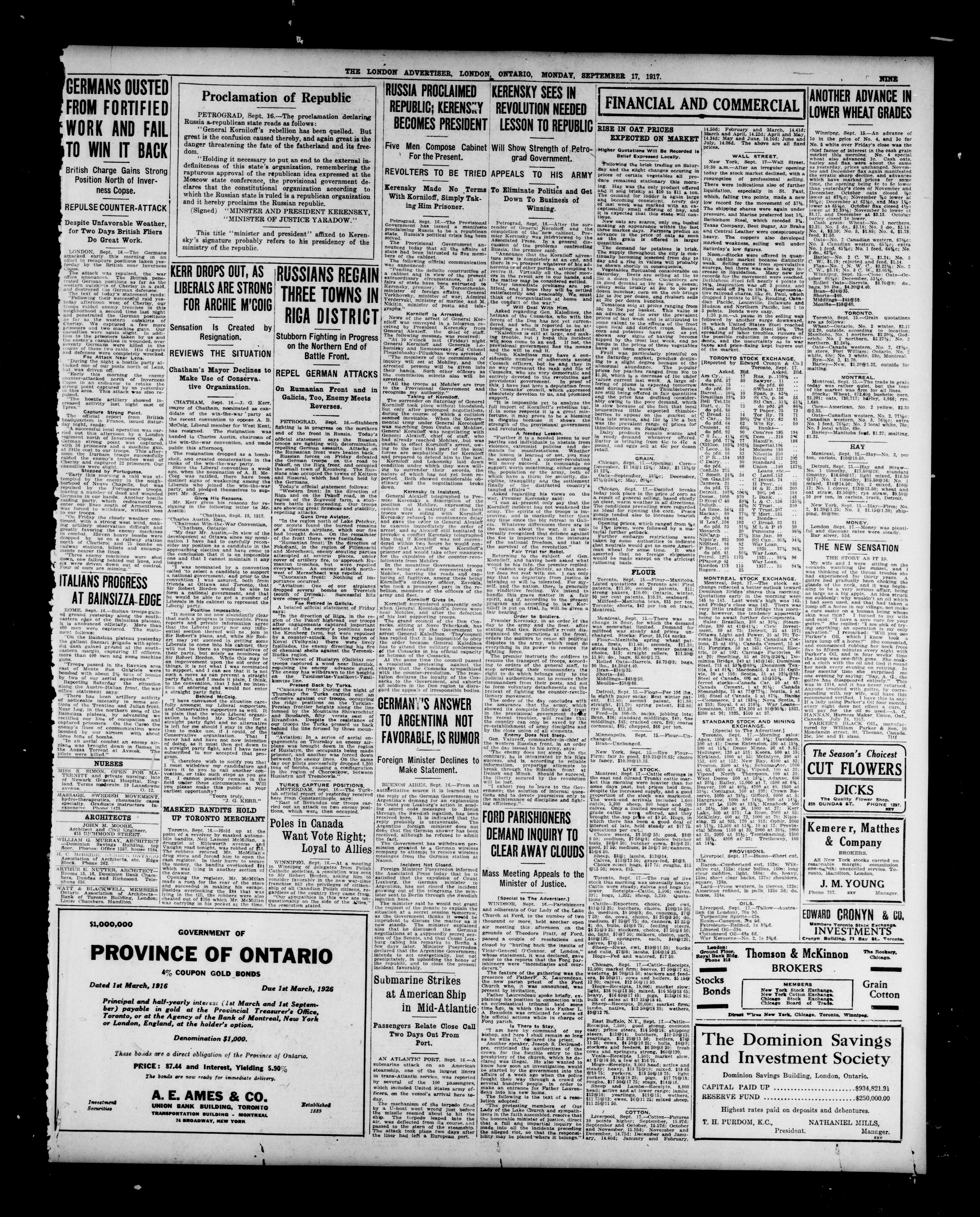 - The London Advertiser : 53rd Year, No. 22878 (September 17, 1917)