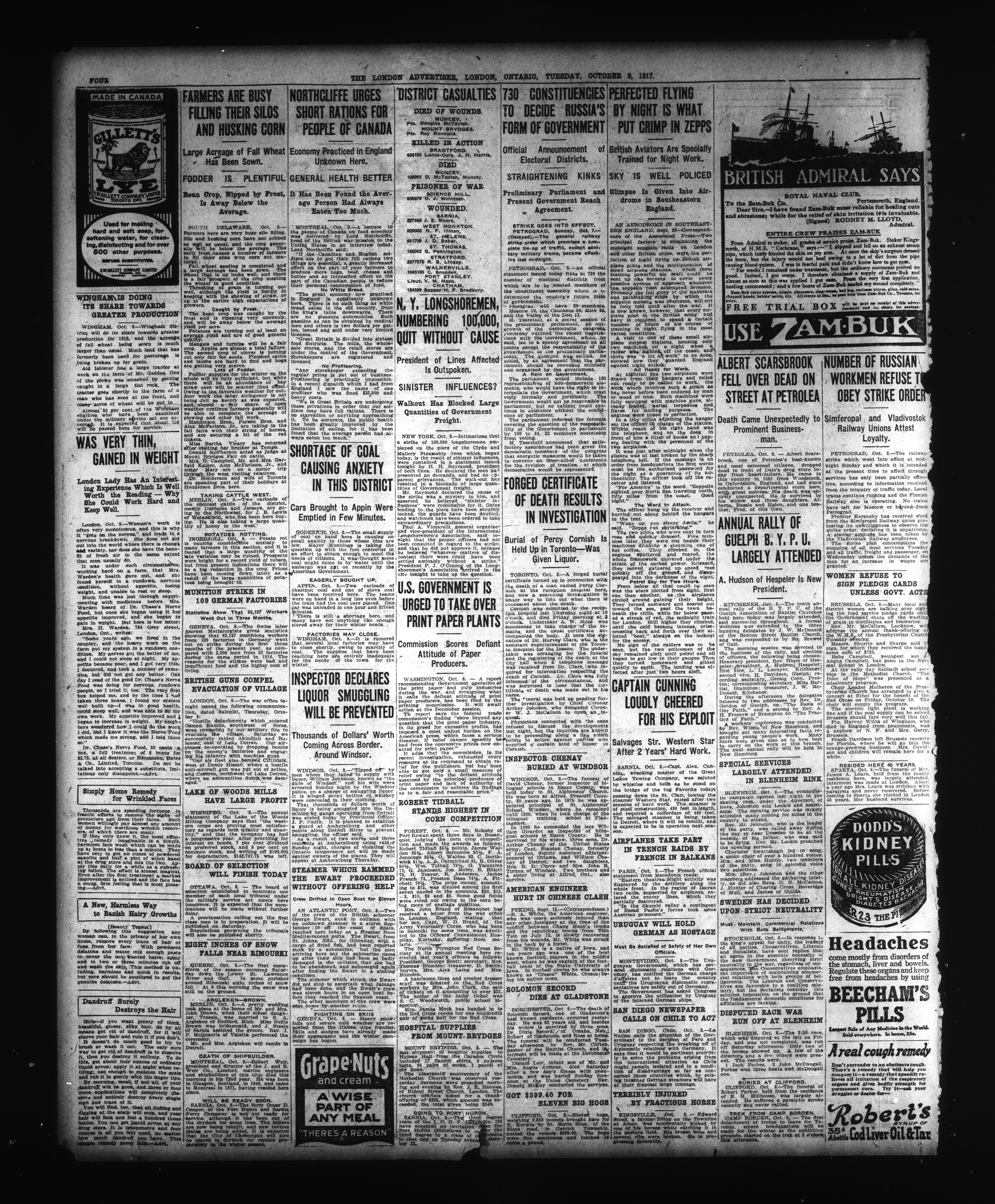 London advertiser. : The London Advertiser : 53rd Year, No. 22897 (October 9, 1917)