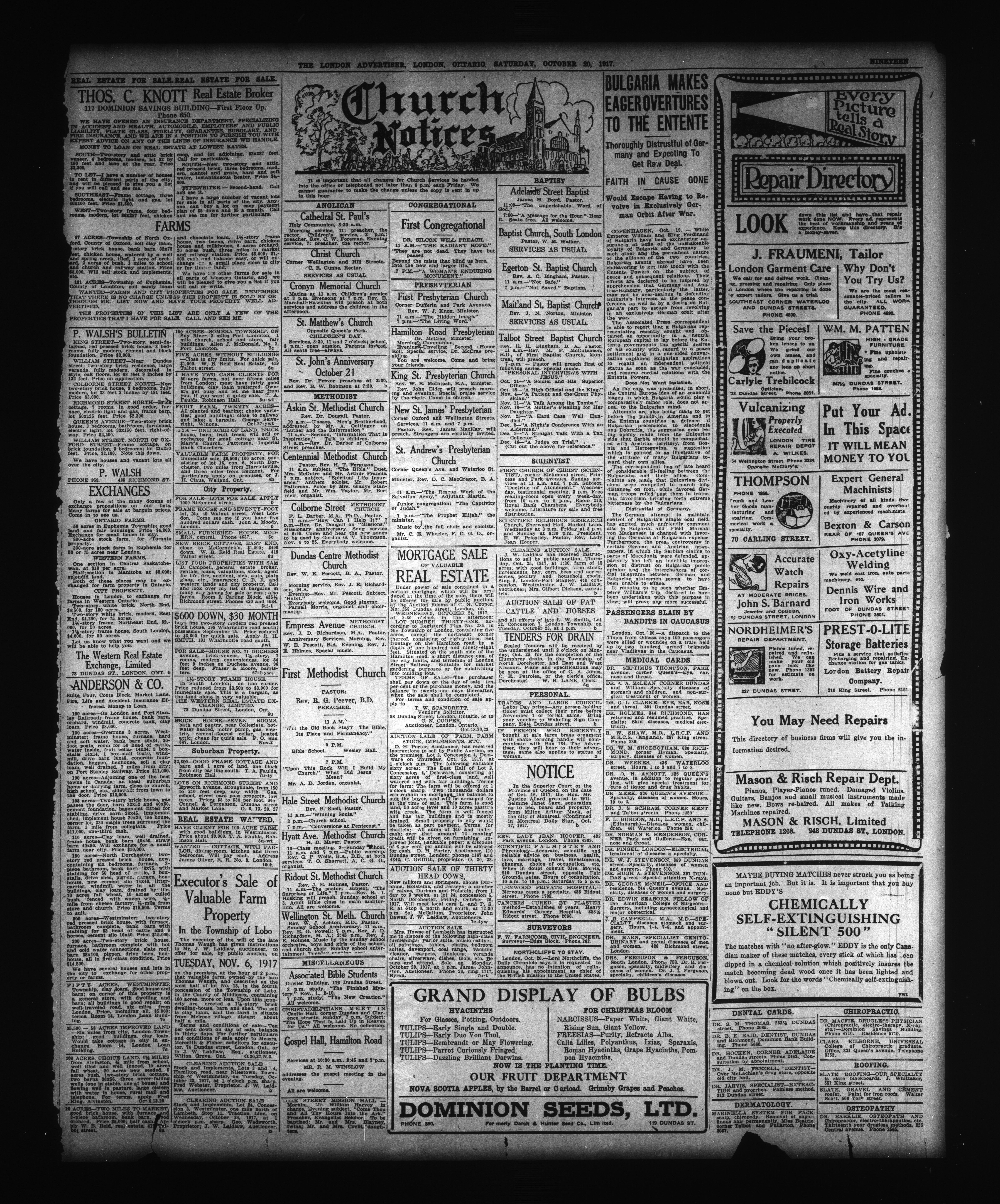 - The London Advertiser : 53rd Year, No. 22907 (October 20, 1917)