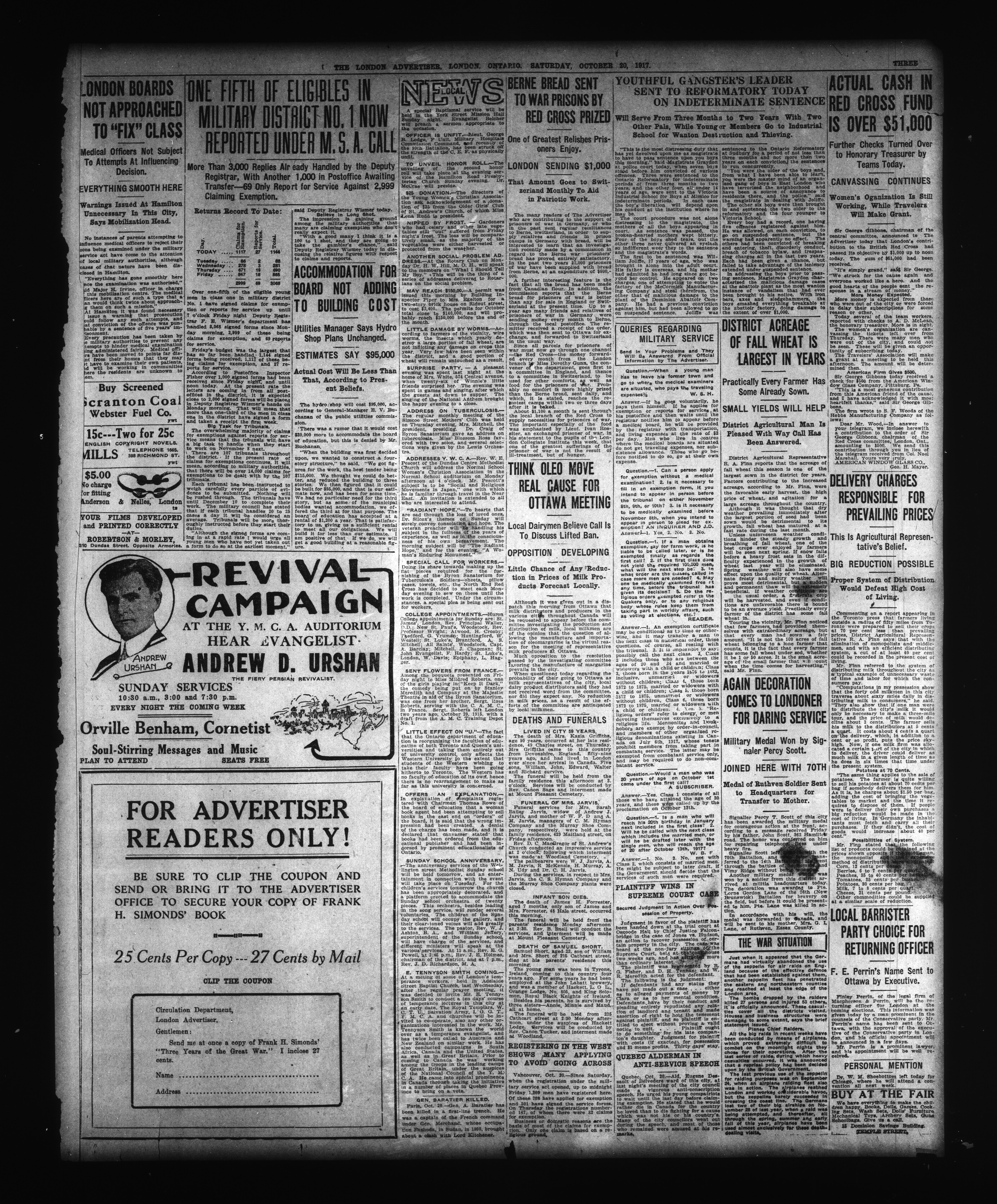 - The London Advertiser : 53rd Year, No. 22907 (October 20, 1917)