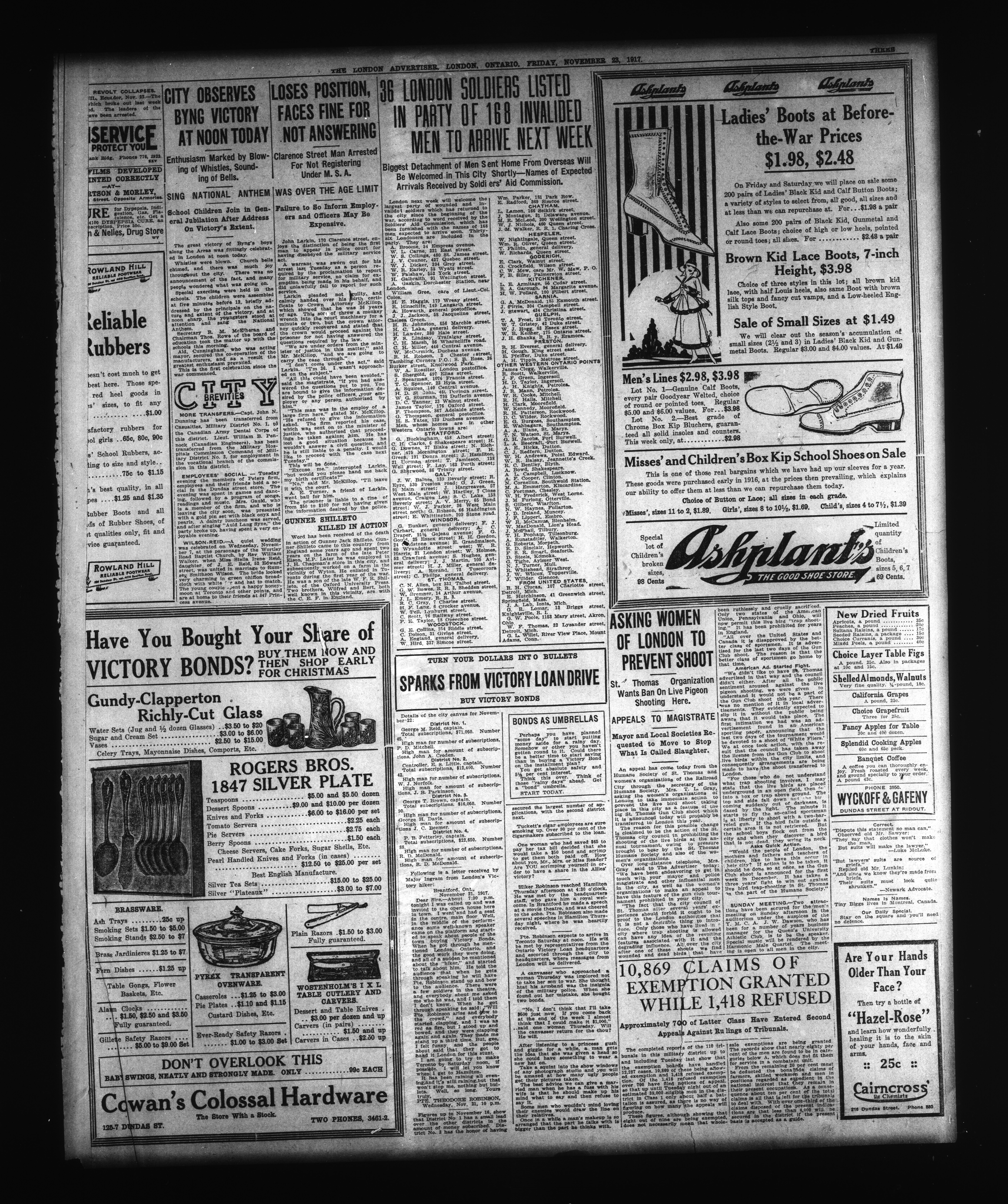 - The London Advertiser : 53rd Year, No. 22936 (November 23, 1917)
