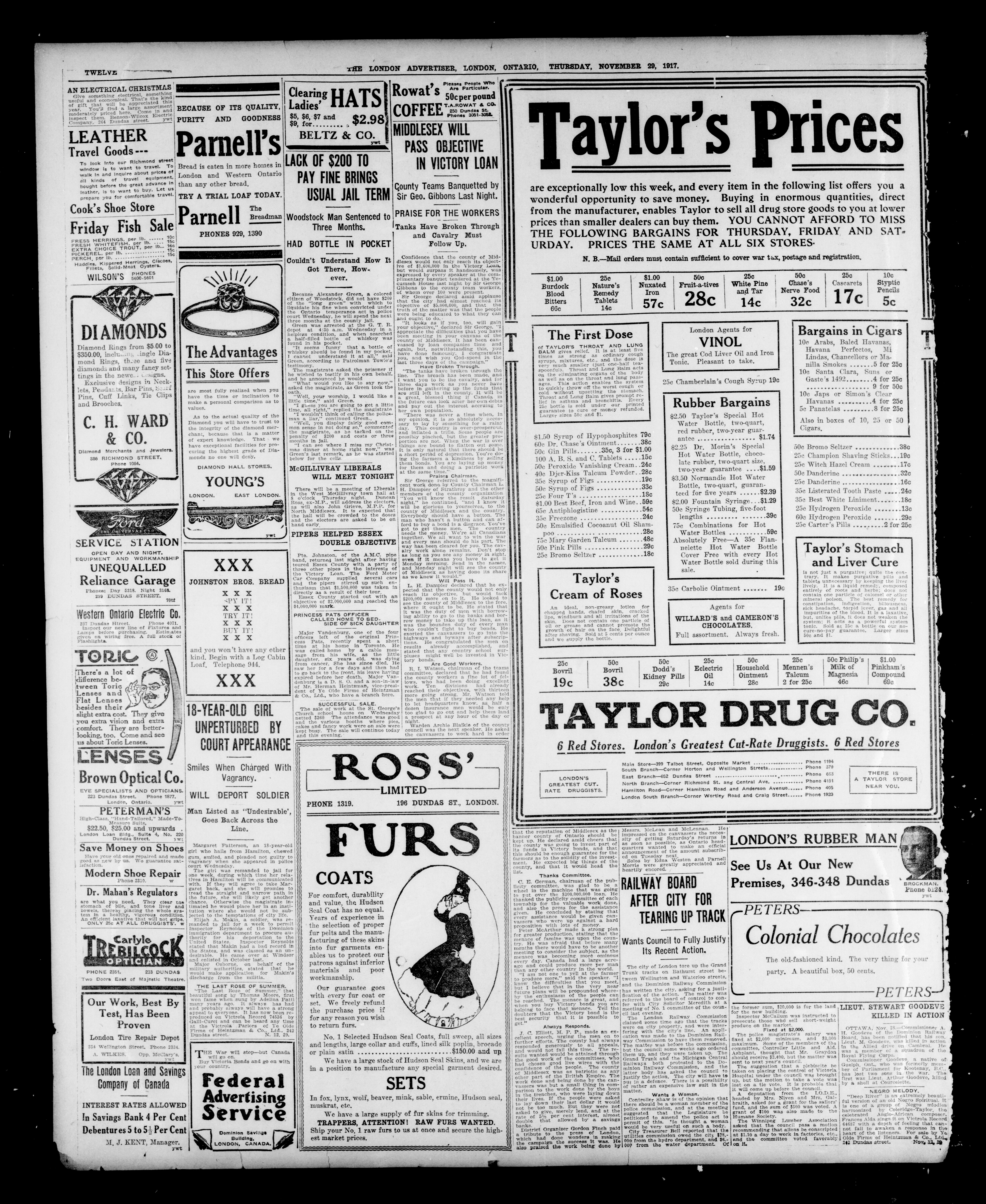 London advertiser. : The London Advertiser : 53rd Year, No. 22941 (November 29, 1917)