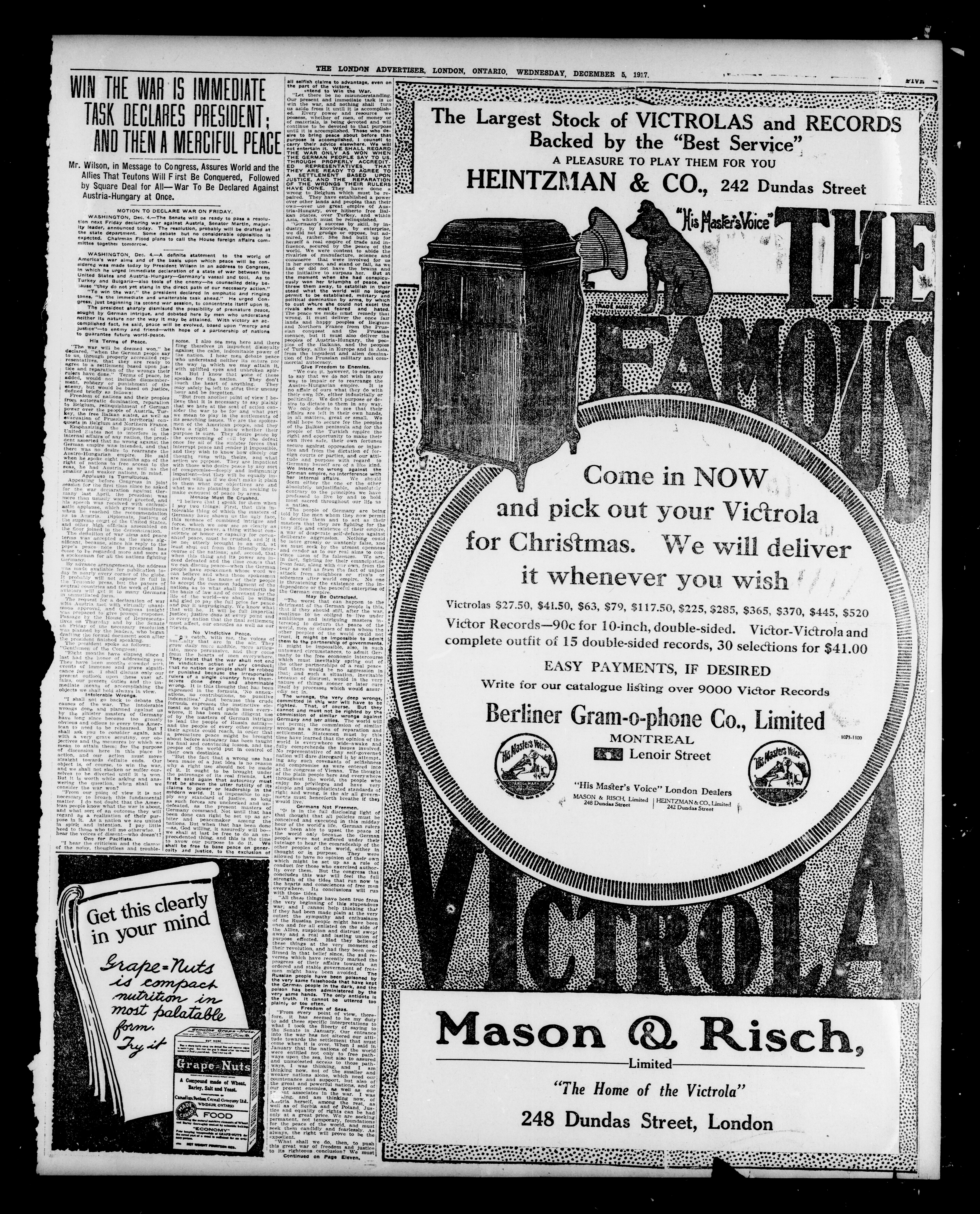 - The London Advertiser : 53rd Year, No. 22946 (December 5, 1917)