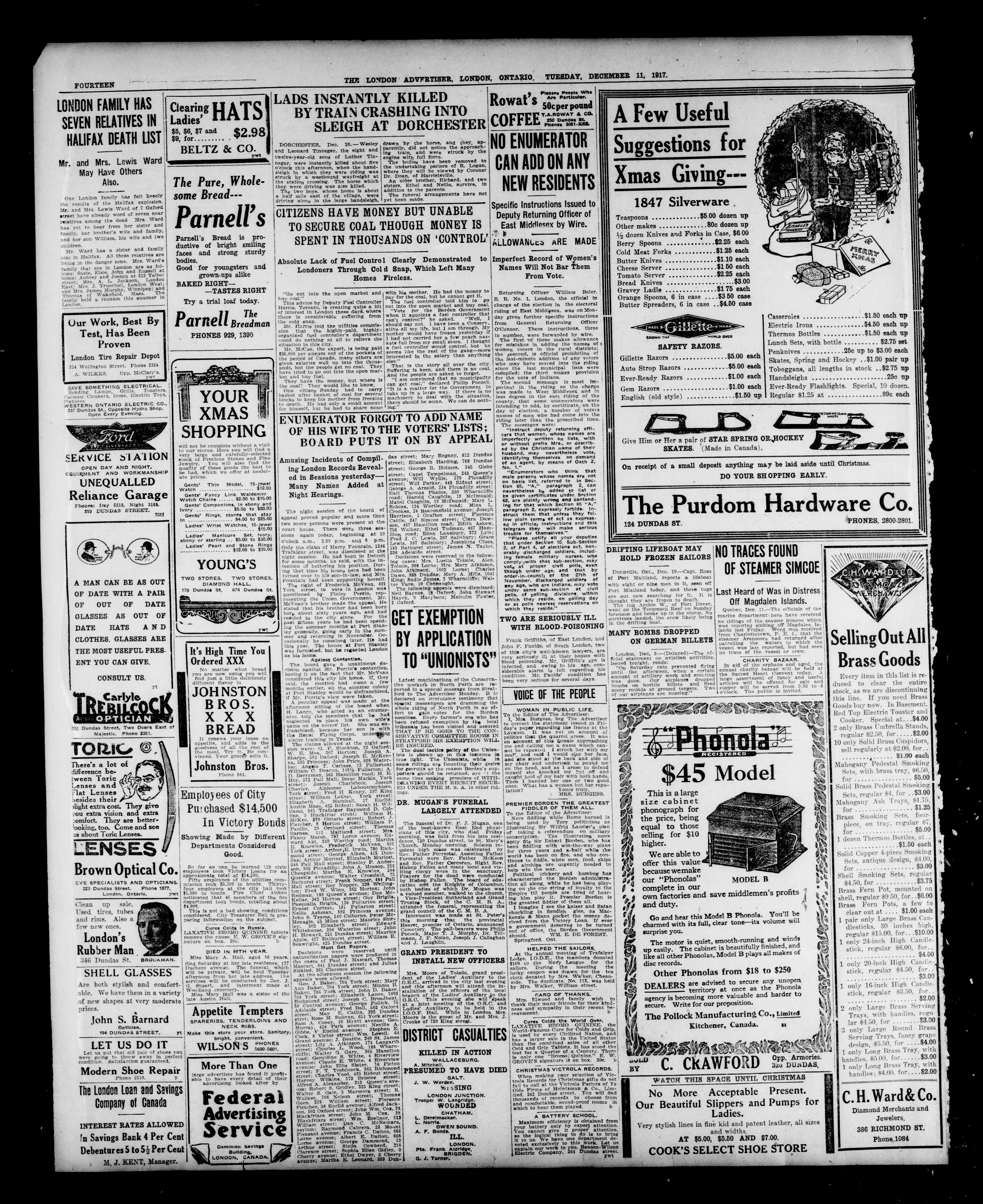 London advertiser. : The London Advertiser : 53rd Year, No. 22951 (December 11, 1917)