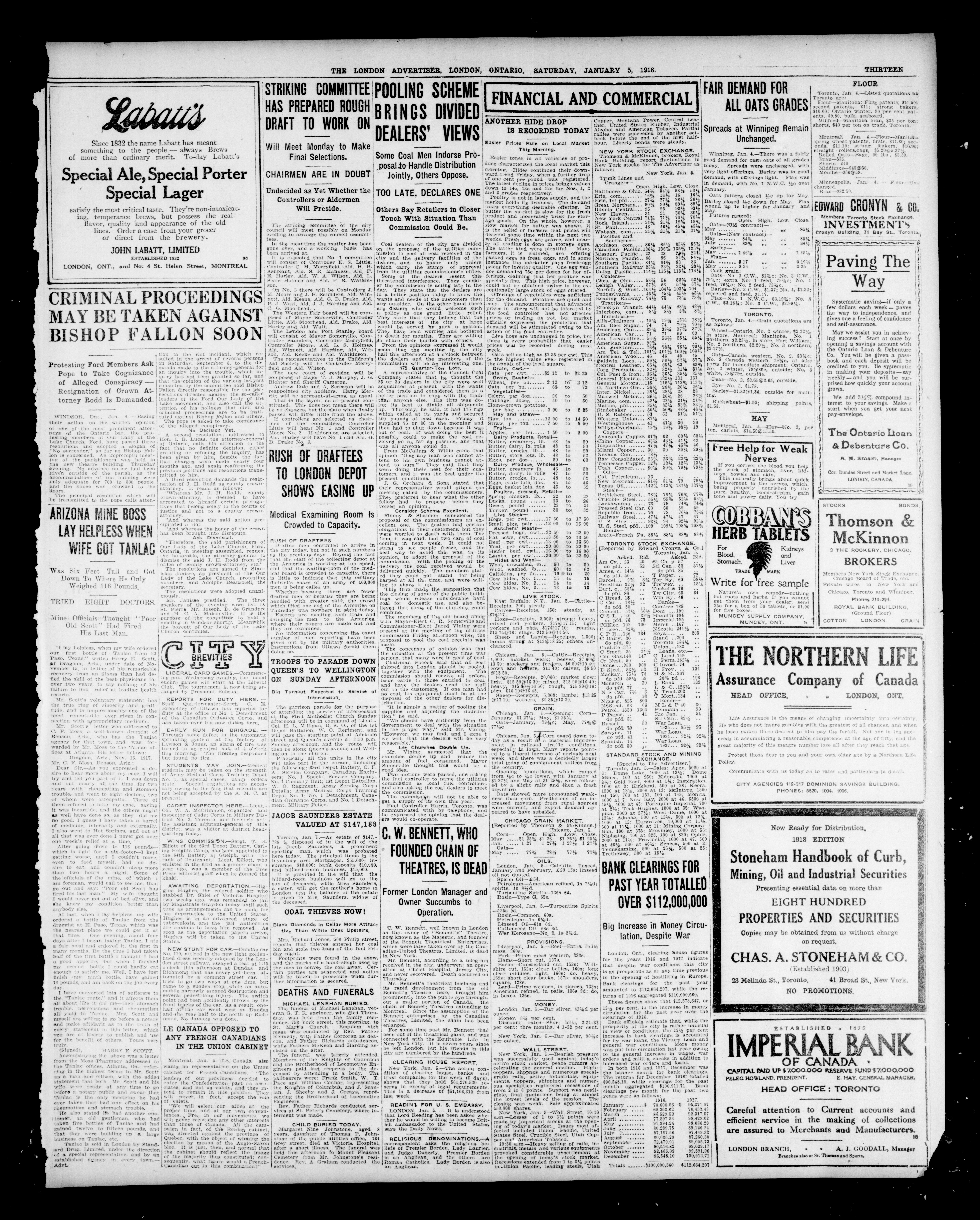 - The London Advertiser : 53rd Year, No. 22973 (January 5, 1918)