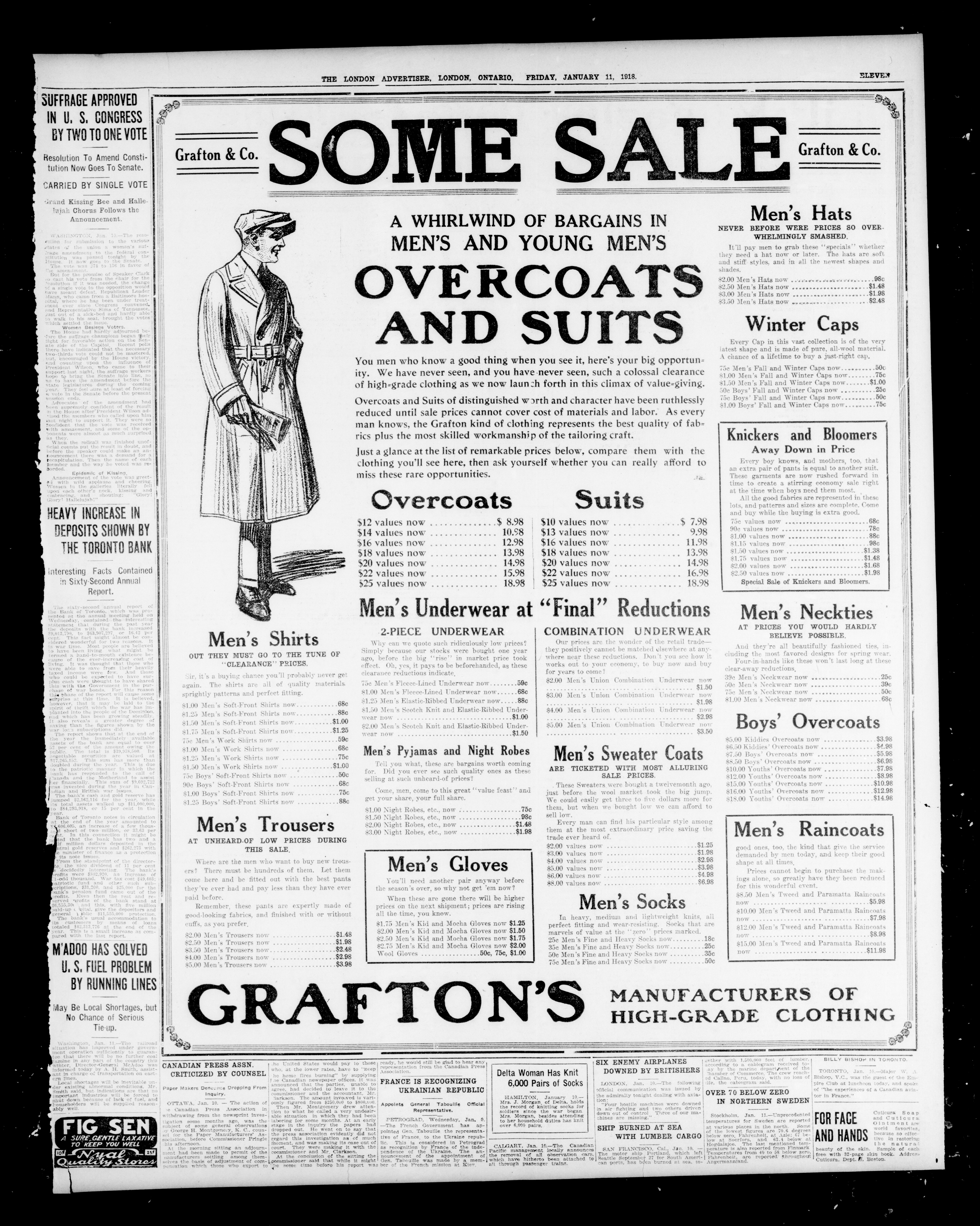 - The London Advertiser : 53rd Year, No. 22978 (January 11, 1918)