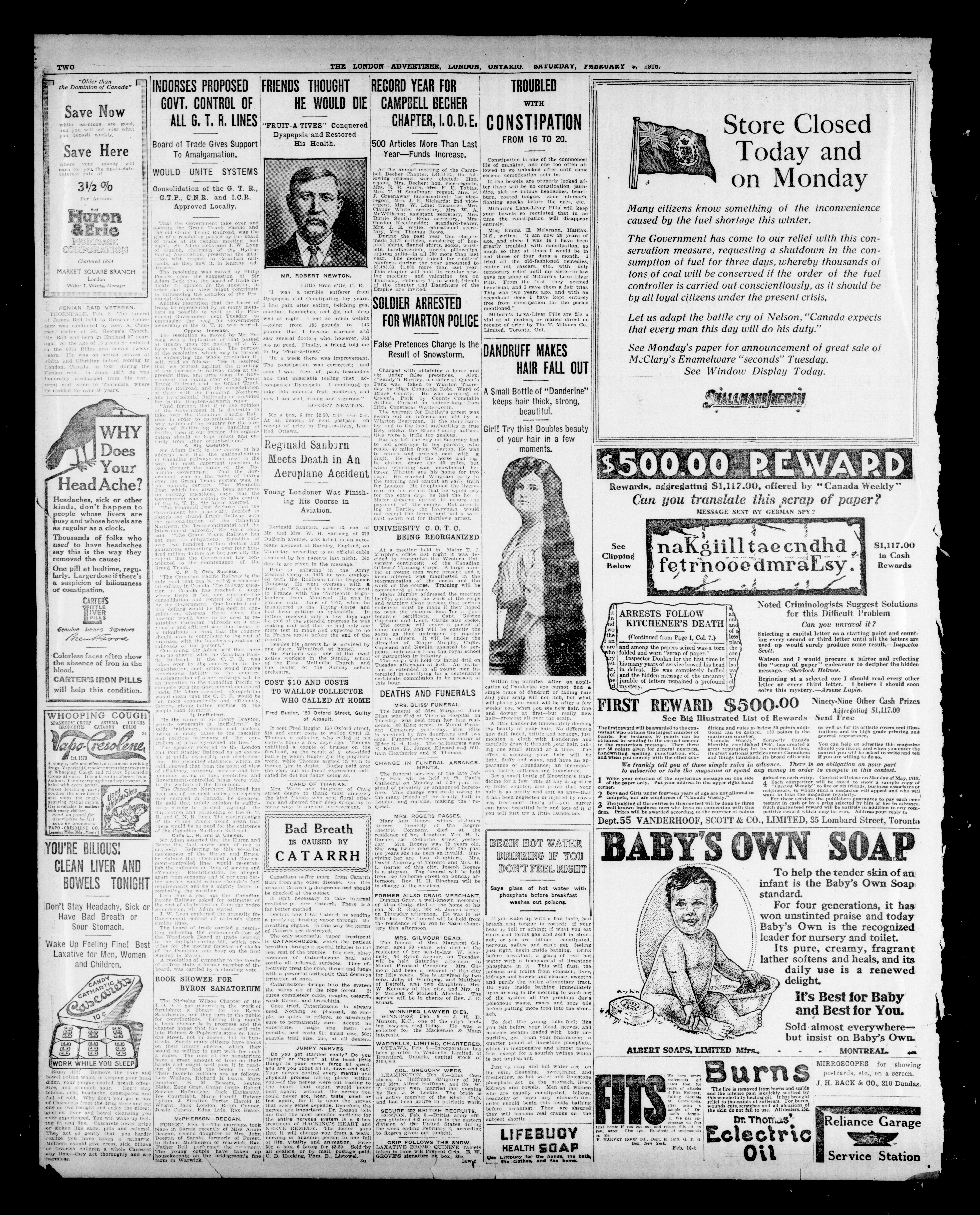 - The London Advertiser : 55th Year, No. 23003 (February 9, 1918)