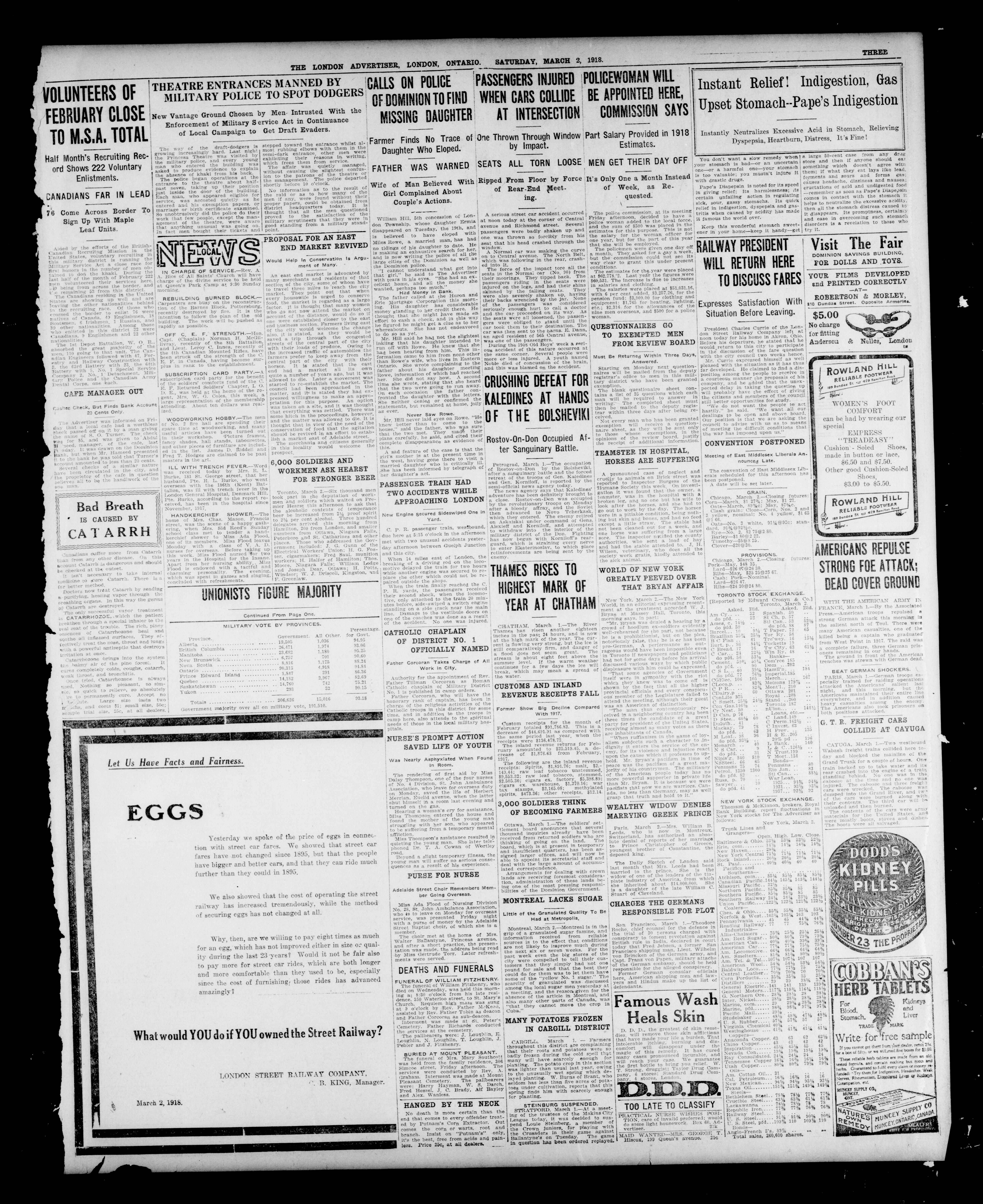 - The London Advertiser : 55th Year, No. 22021 (March 2, 1918)