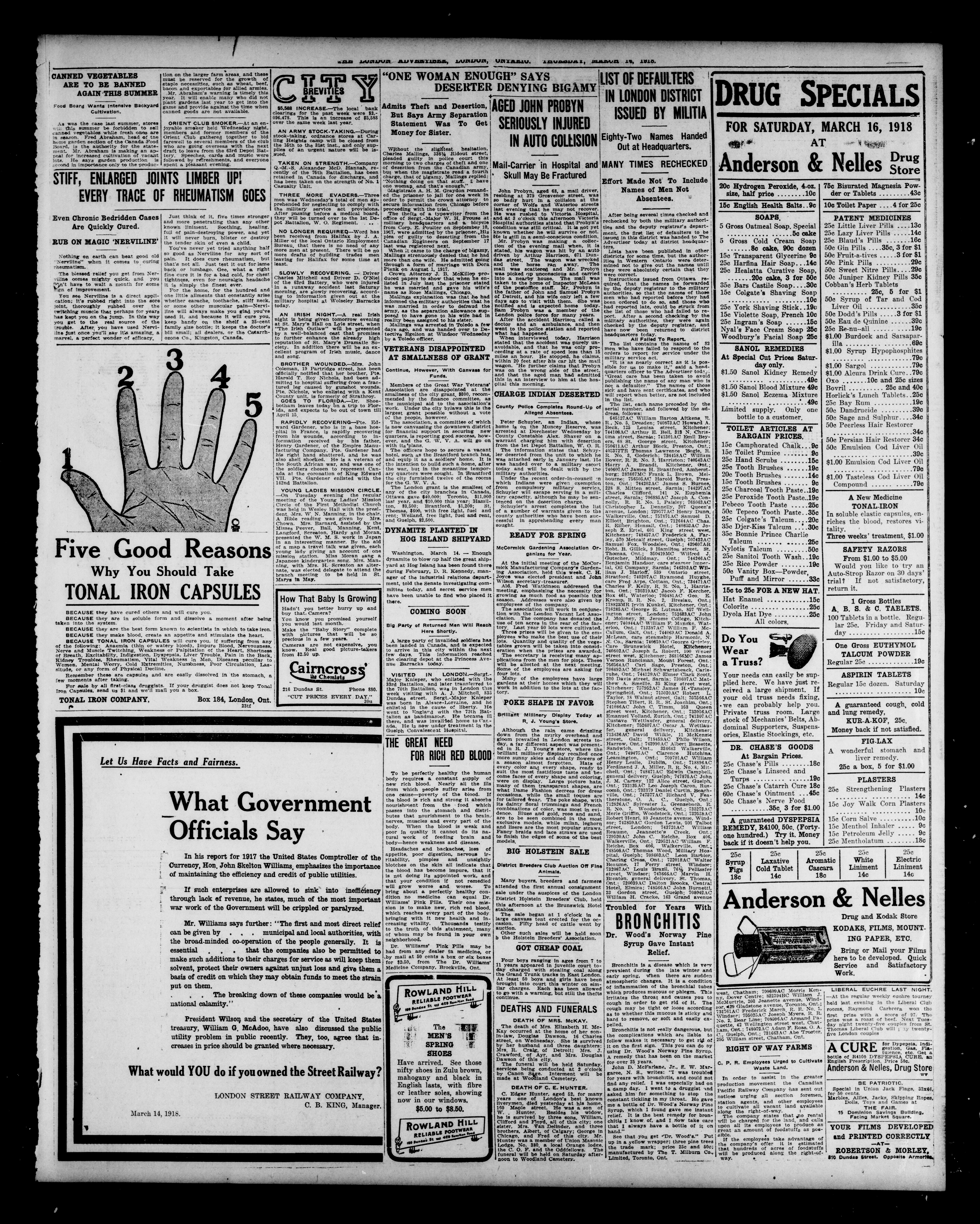 The London Advertiser : 55th Year, No. 22031 (March 14, 1918)